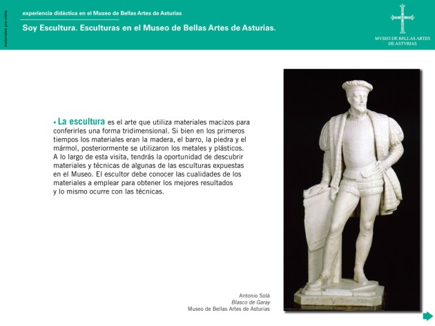 Con motivo de la realización de la próxima experiencia educativa en el Museo de Bellas Artes de Asturias, titulada: Soy escultura. Esculturas en el Museo de Bellas Artes de Asturias, hemos elaborado una nueva guía interactiva con diferentes recursos didácticos dirigidos al alumnado de Educación Primaria. Pincha sobre la imagen y accede a esta nueva guía.