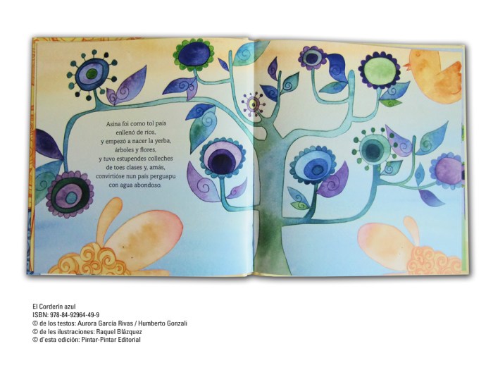 El corderín azulTestu: Aurora García Rivas / Humberto Gonzali Un cuentu ilustráu pa los más pequeños con oveyes, pastores, árboles, flores, ríos, montes y munchos colores. |
