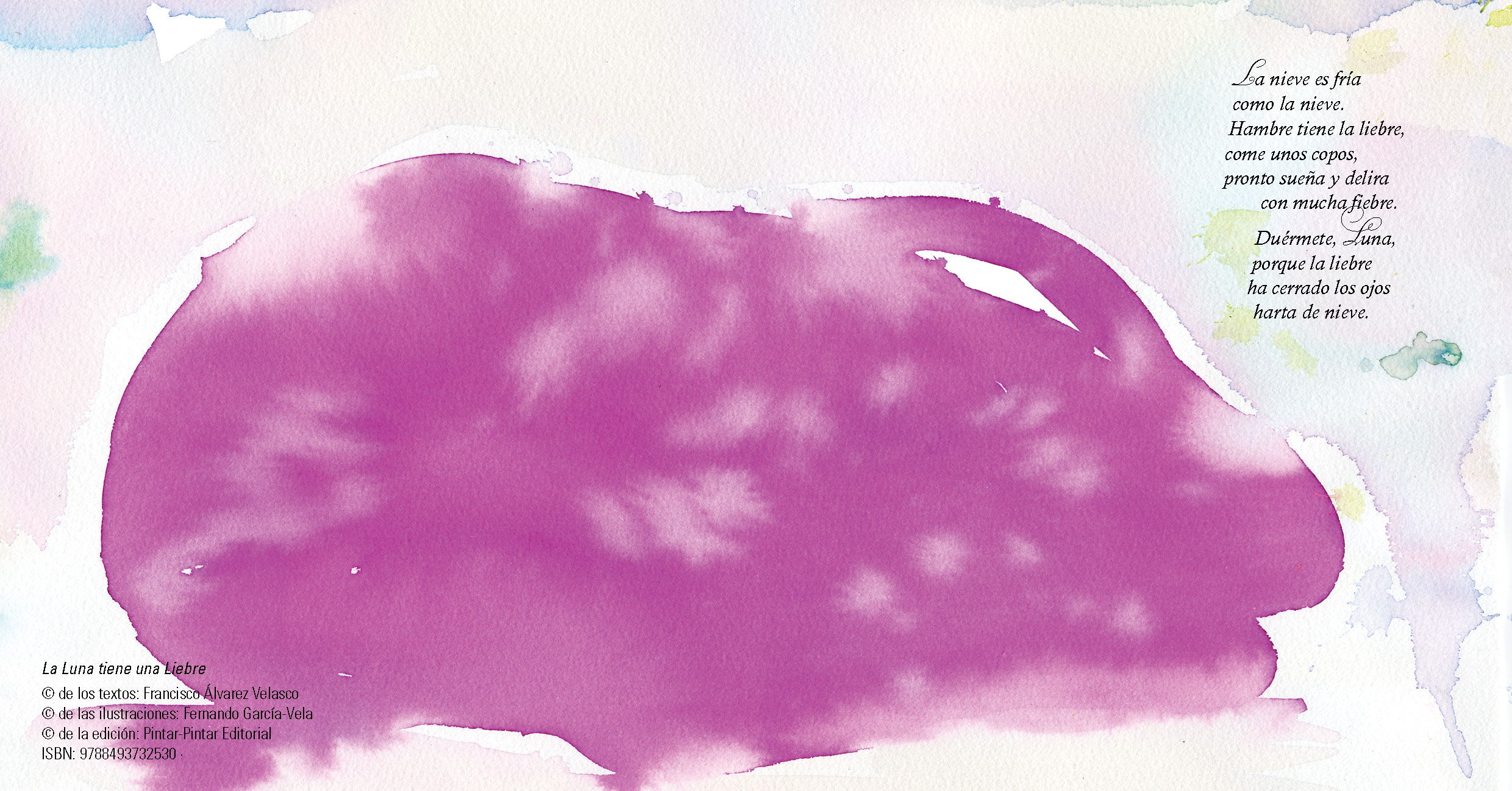 Duérmete, Luna,Hambre tiene la liebre, come unos copos, pronto sueña y delira con mucha fiebre. porque la liebre ha cerrado los ojos harta de nieve». |