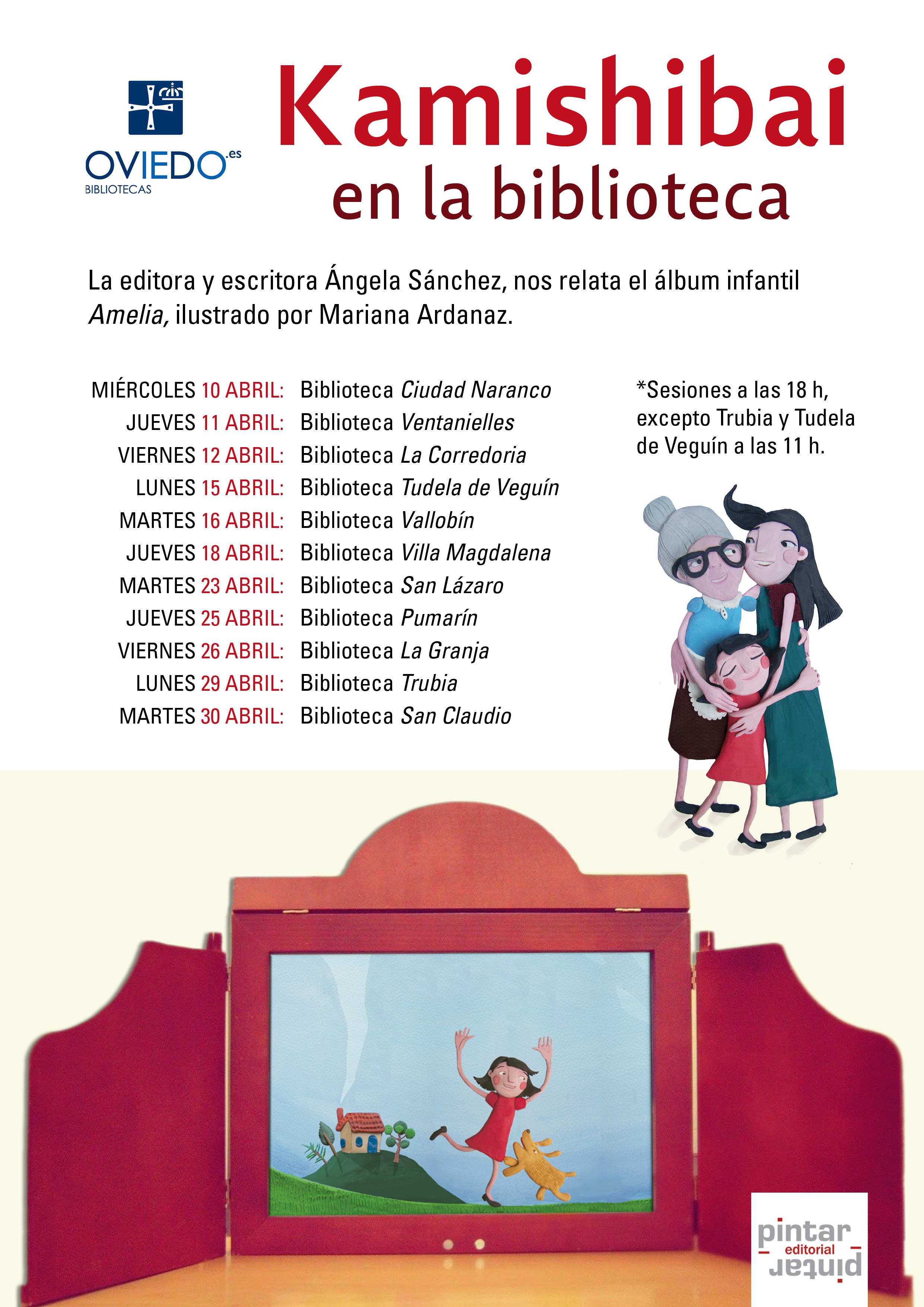 La editora y escritora Ángela Sánchez llevará por la red de bibliotecas de Oviedo, el Kamishibai del álbum infantil ilustrado Amelia, con ilustraciones de Mariana Ardanaz