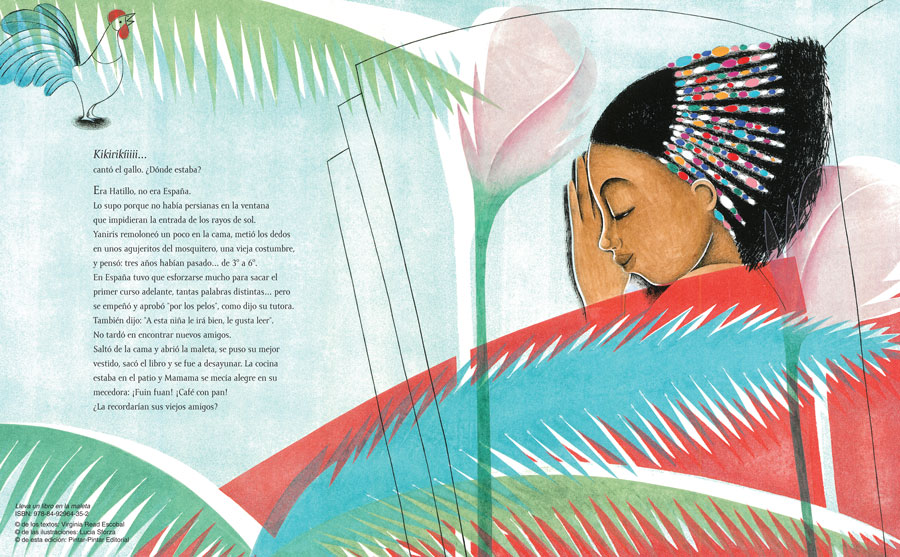 La filial de la Editorial Santillana en República Dominicana publicará en fechas próximas, el álbum infantil ilustrado “Lleva un libro en la maleta”, escrito por Virginia Read con ilustraciones de Lucia Sforza y editado originalmente por Pintar-Pintar. Lleva un libro en la maleta, galardonado con un premio nacional a la edición y Finalista del Premio Libro Kiriko 2012, nos narra la historia de Yaniris, su llegada a España cuando era muy pequeña y sus recuerdos: las flores rojas del flamboyán, los jugosos mangos y la biblioteca con los estantes casi vacíos de su antigua escuela en Hatillo. Por eso, ahora que vuelve con su familia de vacaciones, decide que el mejor regalo que puede llevar no son chuches o ropa, es un libro: un libro en su maleta.