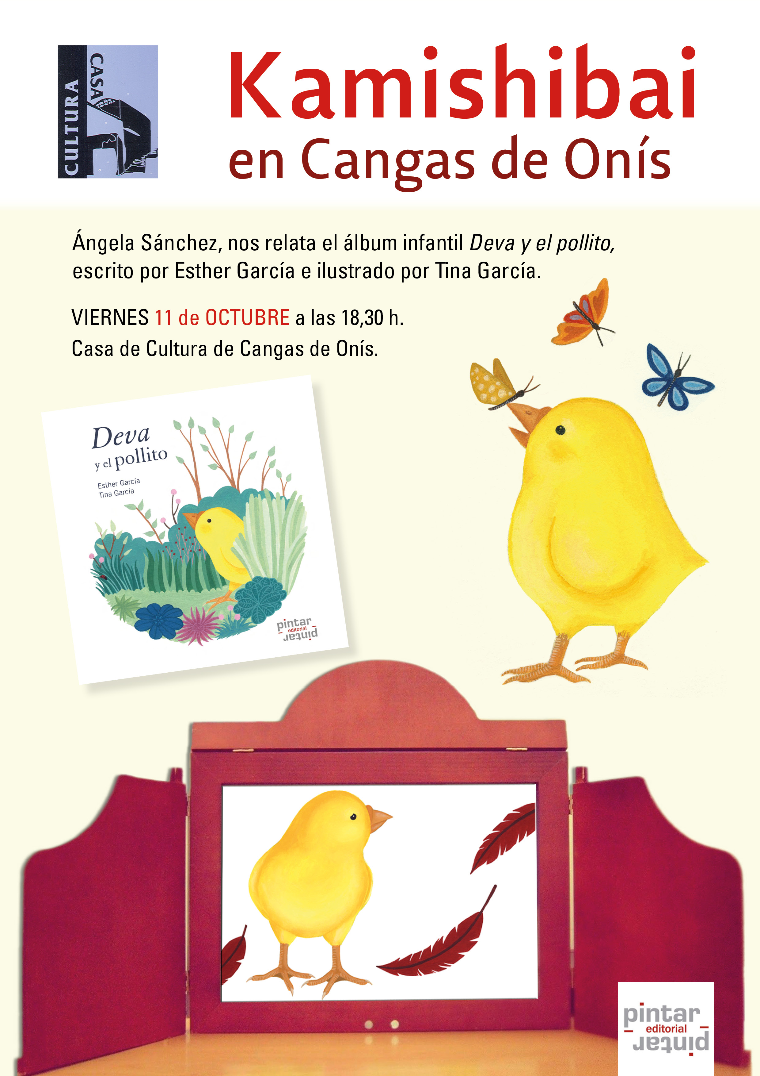 Ángela Sánchez, nos relatará el álbum infantil «Deva y el pollito», escrito por Esther García e ilustrado por Tina García el próximo VIERNES 11 de OCTUBRE a las 18,30 h. en la Casa de Cultura de Cangas de Onís.