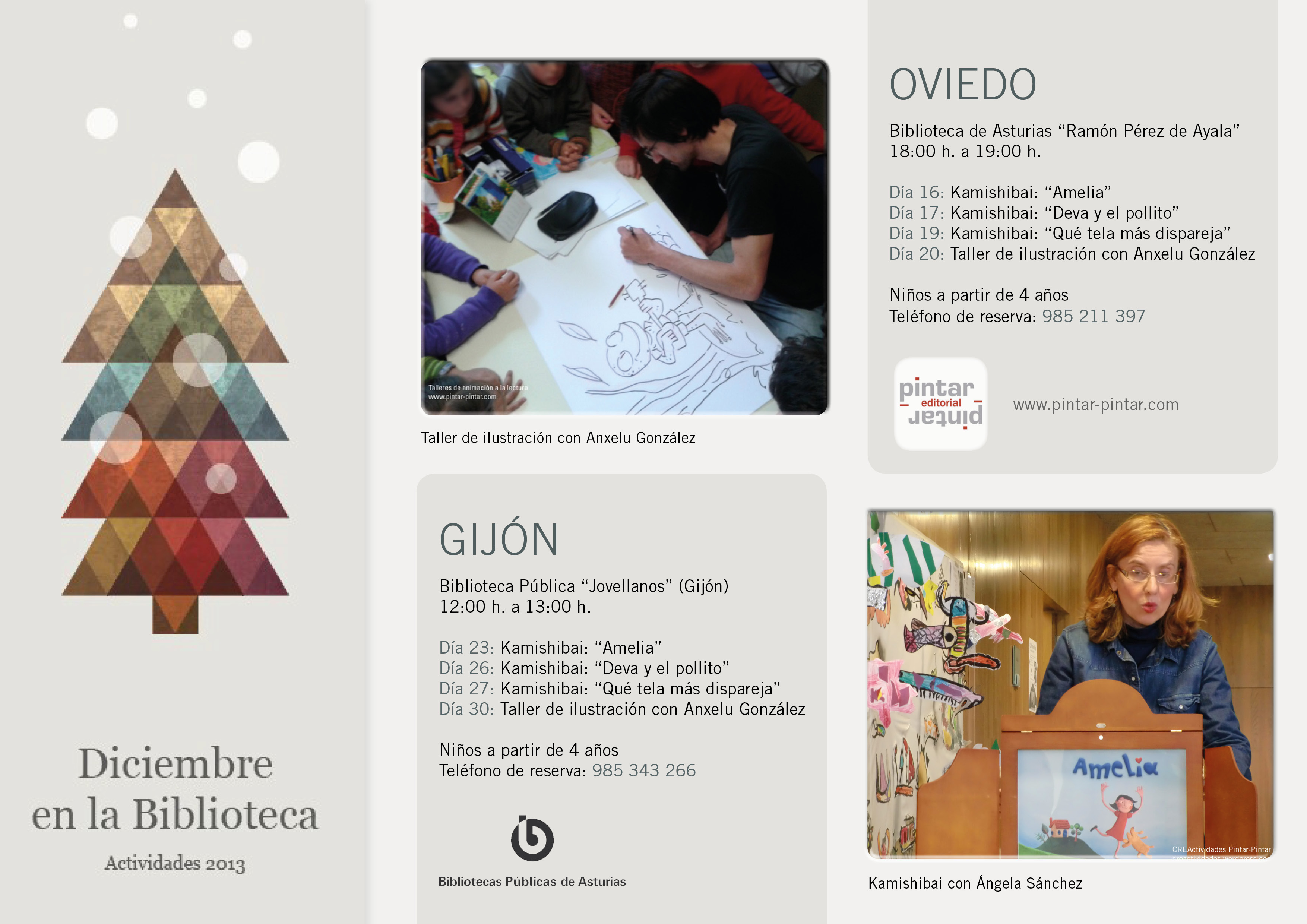 Pintar-Pintar colabora en el programa organizado por la Biblioteca de Asturias y la Biblioteca Pública de Gijón “Jovellanos” «Diciembre en la Biblioteca» con las siguientes actividades: