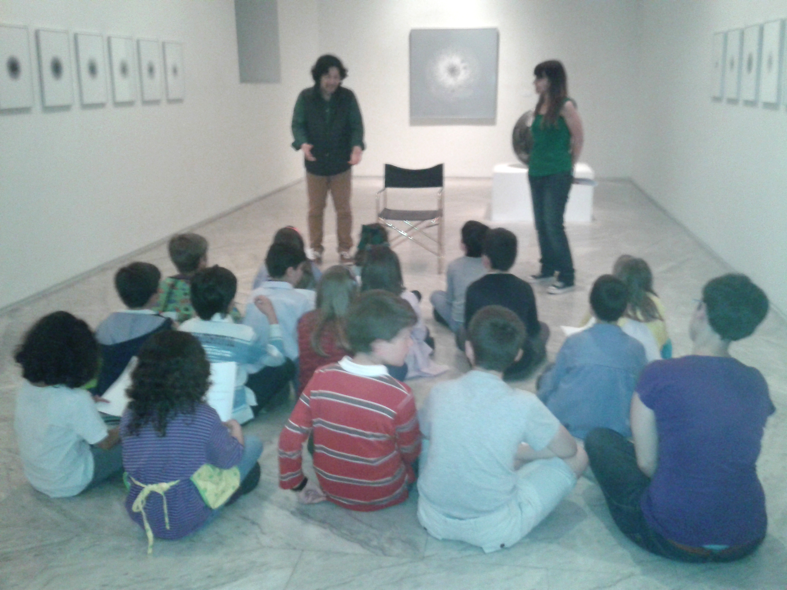 Hablamos sobre la vida en Japón, sobre los materiales que emplea en su obra, su método de trabajo, aspectos más personales y que intrigan a los niños y niñas, como saber que le llamó más la atención al llegar a Asturias o saber cómo fue su infancia en Japón, pero también le preguntamos sobre los colores en su obra, el título de la exposición «Negro silencio», el origen de la vida o su inspiración en la naturaleza.