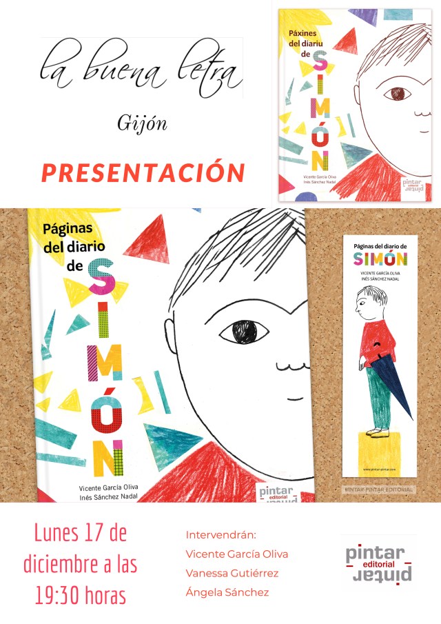 El próximo día 17 de diciembre, lunes, a las 19:30 horas presentaremos en la librería de Gijón «La buena letra» uno de nuestros últimos álbumes infantiles, titulado Páginas del diario de Simón / Paxines del diariu de Simón, en su doble edición en asturiano y castellano.