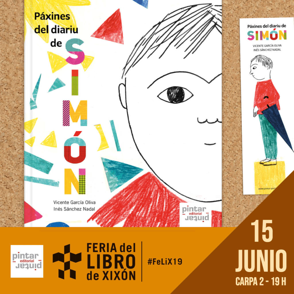 - El sábado 15 de junio a las 19 h en la carpa 2, Vicente García Oliva presentará Páxines del diariu de Simón / Páginas del diario de Simón *Firma de ejemplares al finalizar el acto.