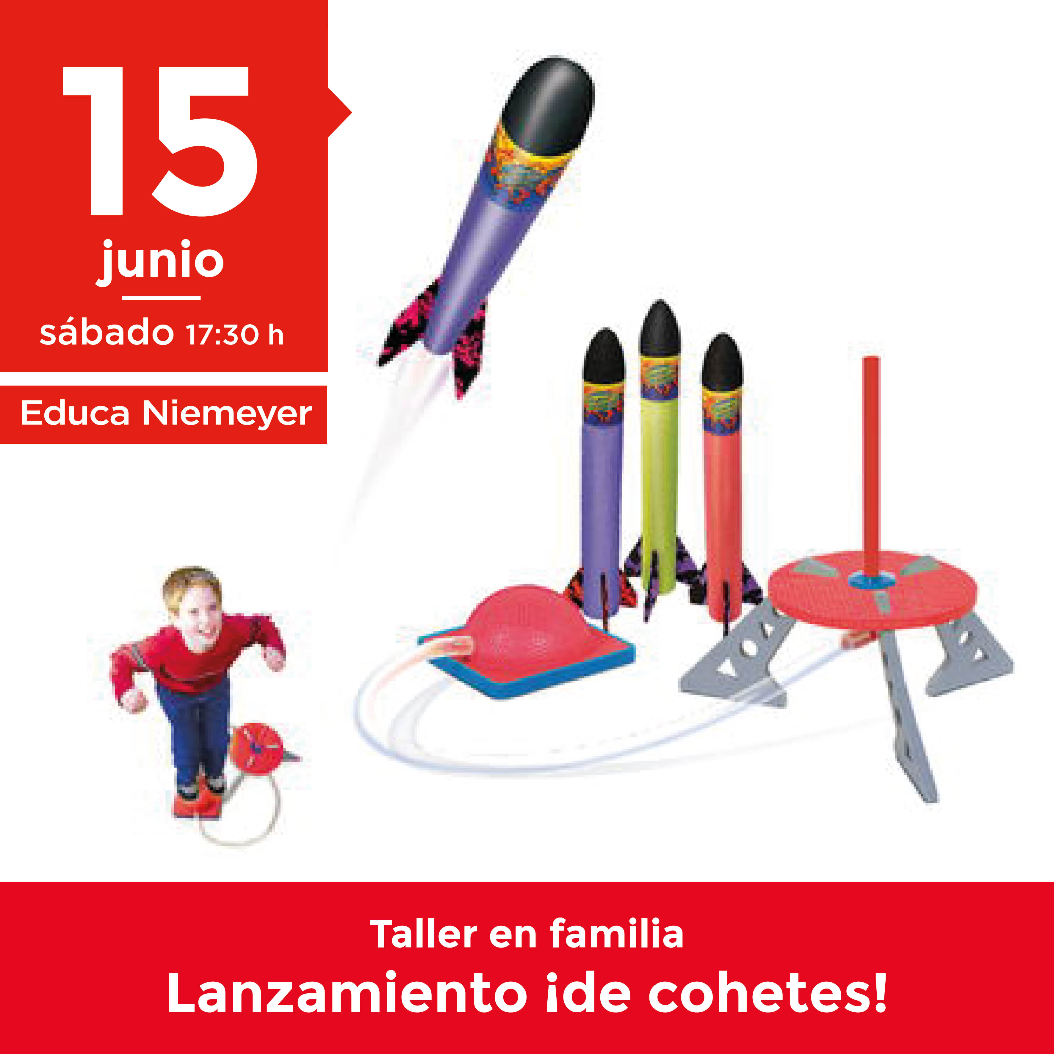 Con nuestros cohetes Jump de espuma suave podremos saltar sobre la rampa de lanzamiento ¡y comprobar a qué altura llegan en la plaza del Centro Niemeyer! ¡Pueden llegar hasta los 25 m de altura! Luego volveremos al espacio Educa Niemeyer para tratar de plasmar con pinturas y colores los momentos más divertidos de la tarde Si todavía pudiera volar más alto… ¿a dónde enviarías tu cohete?