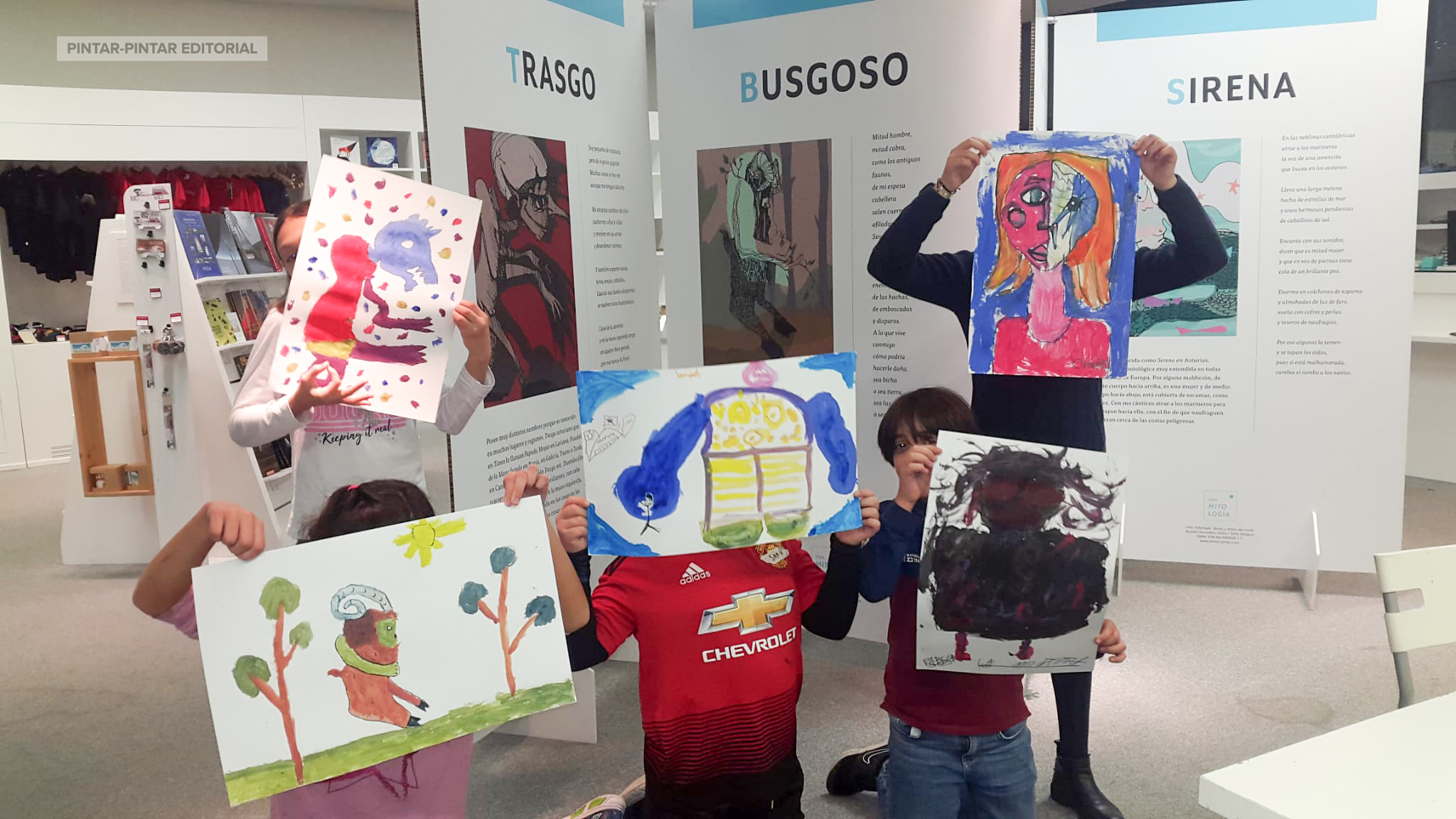 Visitamos la muestra Una mitología. Seres y mitos del norte basada en el poemario ilustrado escrito por Aurelio González Ovies (Premio de las Letras Asturianas 2018) e ilustrado por Toño Velasco y creamos un cuélebre ¡con escayola!