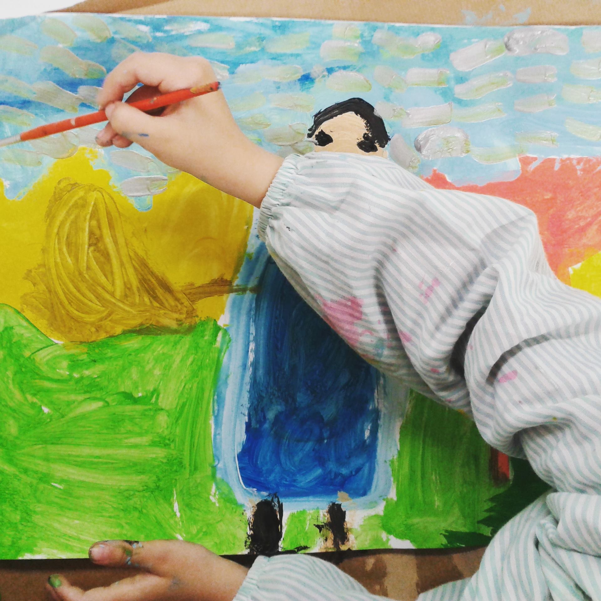 Vamos a poner en práctica un juego que tiene que ver con nuestras emociones y con las condiciones meteorológicas. Y para ello vamos a fijarnos en concreto en el viento, en los días que hace viento, o no, y en la fuerza con la que sopla. ¿Podemos ver el viento? ¿Cómo sabemos que hay viento entonces? ¿Cómo podemos pintar una tormenta invernal? Hablamos de todo ello, observamos diferentes obras de arte y pintamos una tormenta. Nos inspiraremos además con ayuda de un tubo de truenos: un tubo de cartón que al agitarlo se desplazan las largas plumas de la membrana de plástico consiguiendo una vibración parecida a una tormenta.