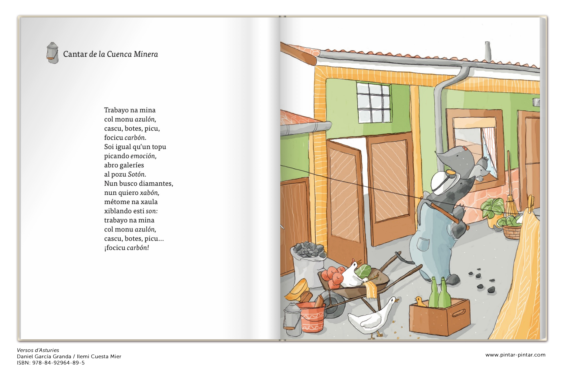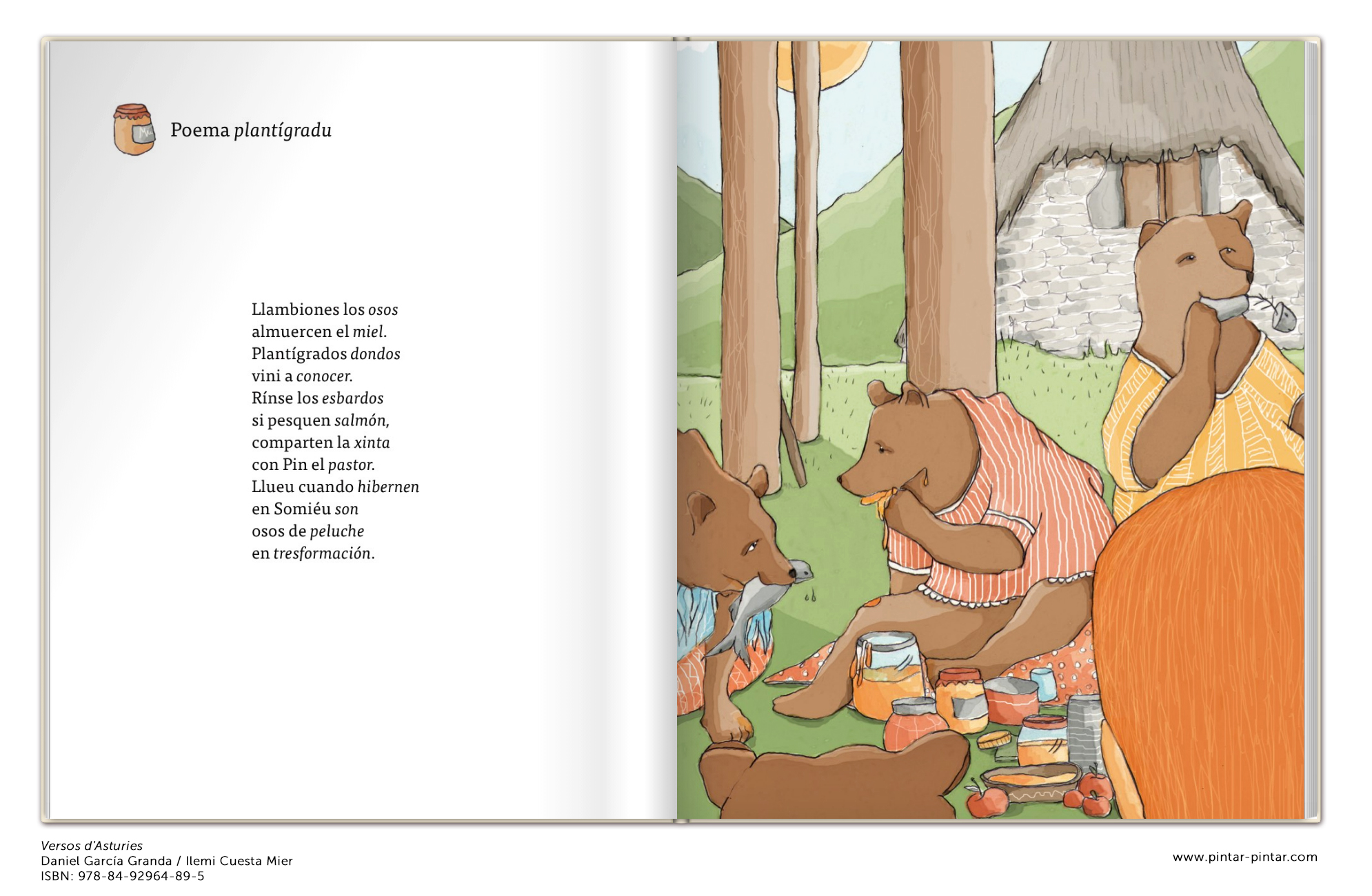 RESUME: Un poemariu enllenu de versos pa conocer o reconocer la nuestra tierra y les nueses pallabres, porque… ¿Tendrá una neña francesa nel so idioma gallu y vieyu la pallabra carrapieyu? ¿Dirá una güela alemana con esi acentu fuertón la pallabra torollón? ¿Sabrá un guah.e xaponés si va llorar al mancase la pallabra empapiellase?