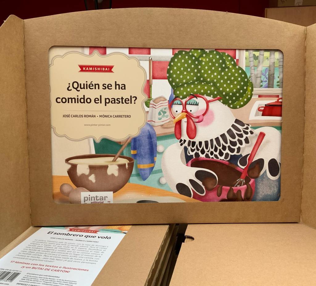 El cuento, además de en su formato tradicional, estará disponible en versión kamishibai. Las láminas (tamaño A3) de ¿Quién se ha comido el pastel? se comercializarán en un pack específico que incluirá un teatrillo butai de cartón. Un nuevo aliciente para acercarse a la lectura de este y otros títulos de Pintar-Pintar.