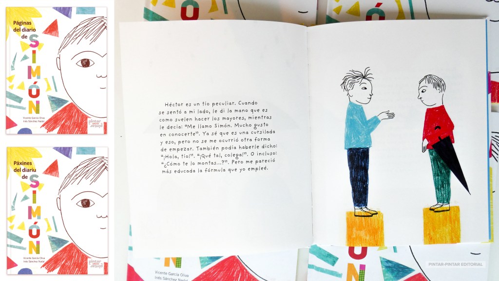 RESUMEN: Simón por fin tiene un diario, pero uno de verdad, de esos con tapas duras y un candado que amarra secretos como si fueran de oro. Así, Simón vedará sus experiencias a su hermano Julián, algo cotilla. Julián no podrá leer la historia de amistad entre Simón y Héctor, un niño con autismo recién llegado a clase. Tampoco cómo lo recibe Simón: sin prejuicios, con naturalidad. Ni que Héctor no siempre logra hacerse entender, y menos con otros alumnos. El fisgón de Julián también se quedará sin saber que Simón defenderá a su compañero de pupitre siempre que sea necesario.