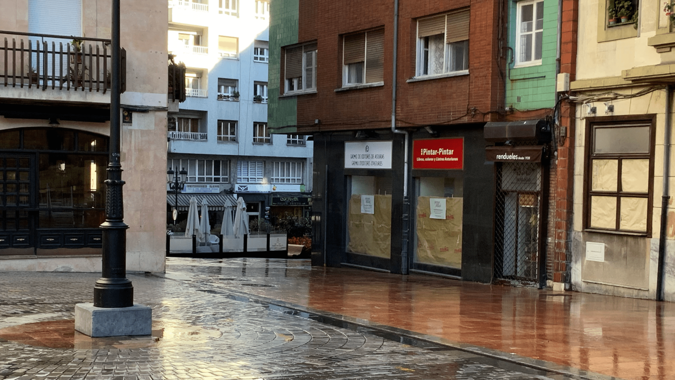Enriba los escaparates yá llucen carteles grandes de vinilu col nome’l llocal, a dambos llaos de la entrada, y col llogotipu del Gremiu d’Editores d’Asturies —orientáu a la plaza Porlier, llugar de tránsitu de turistes y pasiantes—. «Esi escaparate, pelo menos, tendrá siempre les publicaciones de los agremiaos», diz Ester Sánchez. «Nel restu va haber sitiu pa les nueses publicaciones, llámines d’ilustradores, tazes, camisetes y inclusive los dibuxos infantiles de los talleres que vayamos impartiendo».