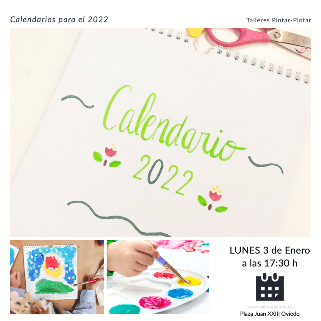 Ya está aquí el nuevo año 2022. ¿Te gustaría crear tu propio calendario? Cada participante recibirá un calendario permanente blanco de 23 x 24 cm con encuadernación en espiral con doce hojas para cada uno de los meses de 220 g/m2 y una cubierta que podrá personalizar como más le guste. No olvides, si quieres, traer alguna foto familiar para incluir en tu calendario. Nosotros te ayudaremos con nuestras pinturas, pinceles, papeles de colores y ¡materiales Pintar-Pintar!