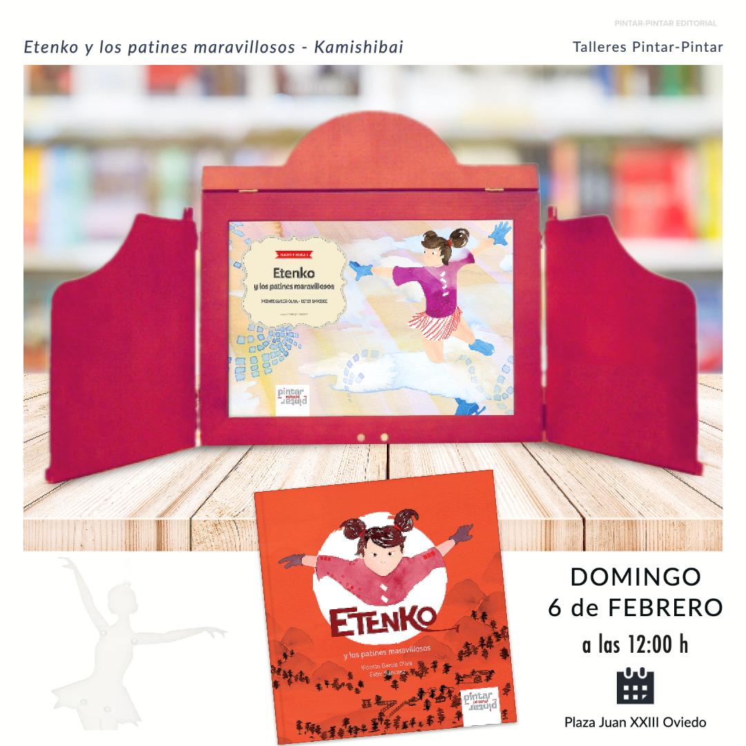 Etenko es una niña que sueña con llegar a lo más alto patinando, realizando piruetas increíbles, casi volando, ligera, fuerte y segura mientras persigue sus sueños de libertad, en una bonita metáfora. Compartimos la lectura de este álbum infantil ilustrado escrito por Vicente García Oliva e ilustrado por Ester Sánchez con ayuda de nuestro kamishibai y aprovechamos sus dinámicas imágenes para trabajar la representación de la figura humana en movimiento empleando una bailarina móvil de cartón. Cada participante recibirá una bailarina de cartón que podrá personalizar como más le gusta y papeles y témperas para trabajar la representación de la figura humana en movimiento.