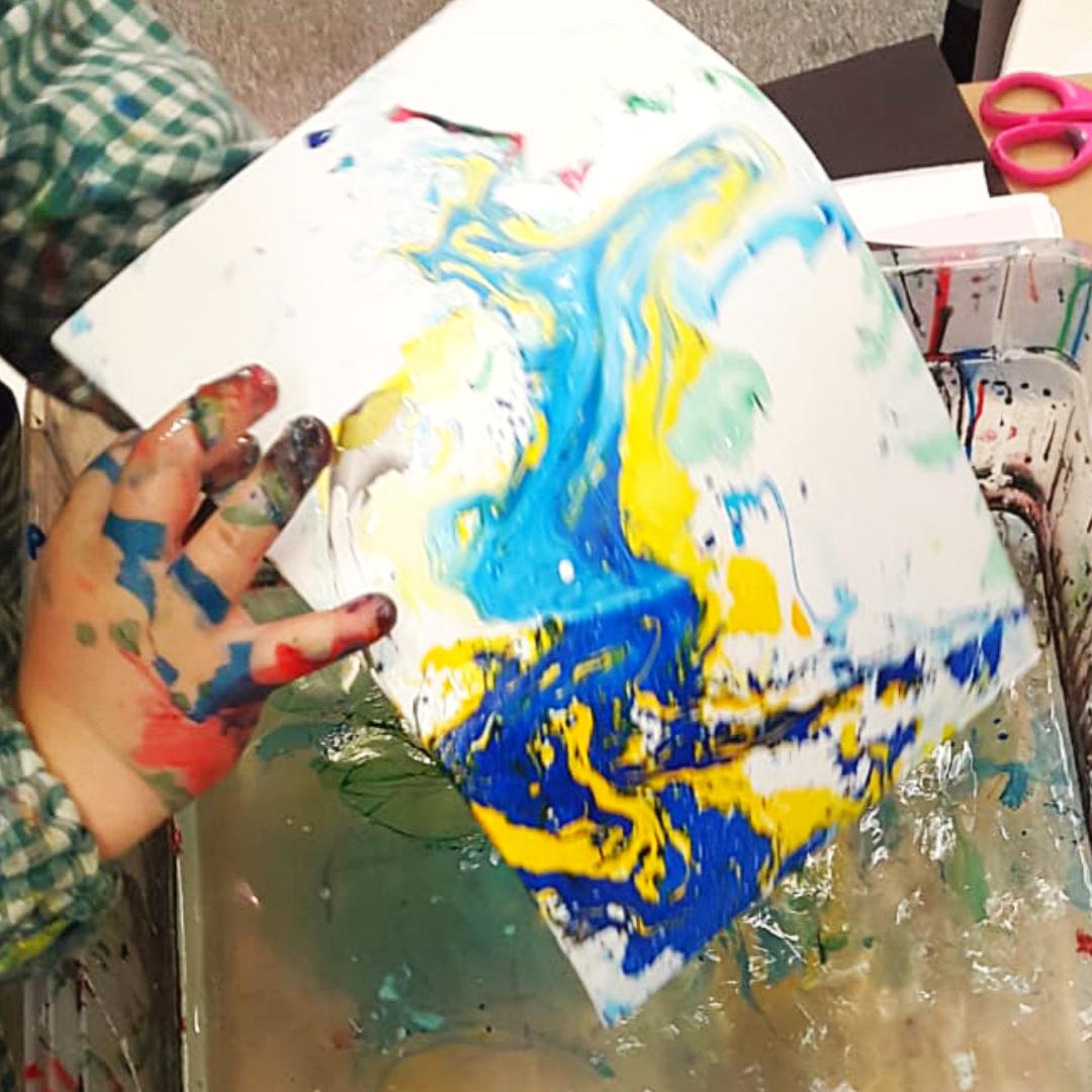 Juega y experimenta creando mil formas y colores divertidos con nuestras pinturas especiales para papel de aguas. No olvides traer un mandilón o ropa para no mancharte.