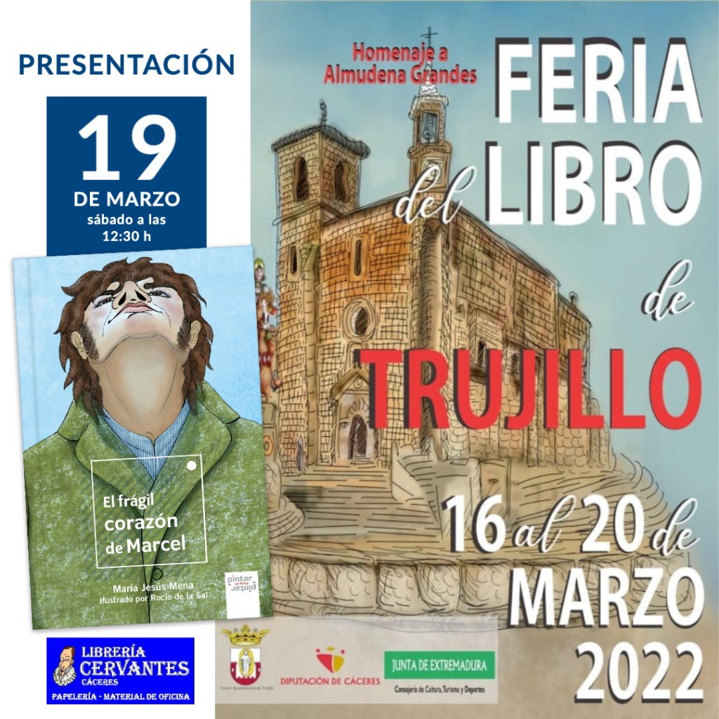 El próximo sábado 19 de marzo a las 12:30 h, Mª Jesús Mena presentará El frágil corazón de Marcel en la Feria del Libro de Trujillo.