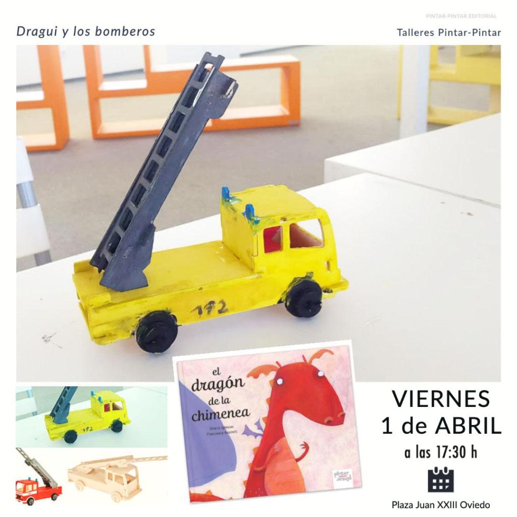invitamos a descubrir la historia de Estrella y Dragui, un divertido dragón, de la mano de Gracia Iglesias y Francesca Assirelli, autoras del álbum ilustrado titulado El dragón de la chimenea. Con posterioridad a la lectura del cuento, montaremos y pintaremos ¡un camión de bomberos! Cada participante recibirá el material necesario para construir un camión de bomberos de 175 x 75 x 310 mm Construcción de contrachapado en 3D de un camión de bomberos ¡listo para montar! Piezas en madera natural. ¿Tendremos que emplear nuestro camión de bomberos para apagar las llamas de Dragui?