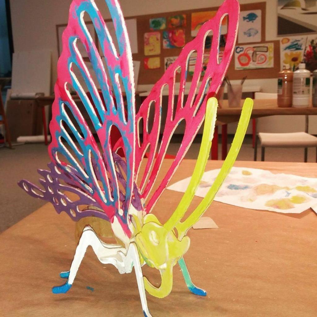 ¿Vienes a pintar mariposas con nosotros? Primero te daremos un Kit de construcción de contrachapado en 3D para montar ¡y pintar! Todas las piezas están ya troqueladas y listas para montar. No es necesario ningún otro tipo trabajo adicional (piezas de madera natural y sin decoración – medidas de 350 x 270 mm, 16 piezas). Y luego también podrás pintar ¡tus propias mariposas de colores!