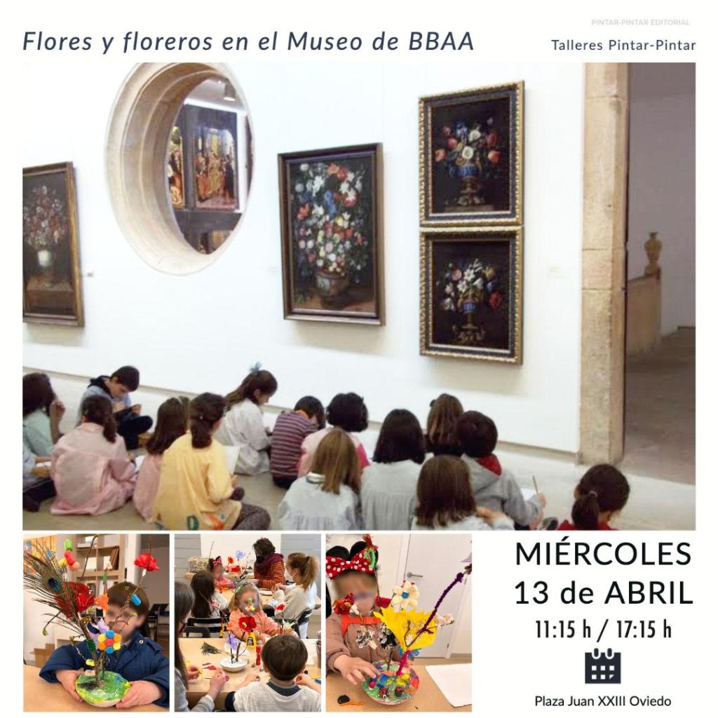 El estudio de la naturaleza ha dado lugar a multitud de manifestaciones artísticas a lo largo de la Historia del Arte. Con este recorrido por el Museo de Bellas Artes de Asturias nos centraremos en la visita a las obras de pintores como Juan de Arellano y sus pinturas de flores y floreros para no solo reconocer diferentes especies florales y fijarnos en sus colores, composición y detalle sino también para desvelar los mensajes ocultos y simbologías que los pintores trataban de representar con ellas. Con posterioridad y de vuelta a Pintar-Pintar, cada familia tendrá la oportunidad de crear su propio «florero» con elementos naturales, papeles, pinturas, colores y diferentes materiales divertidos con los que experimentar y crear.