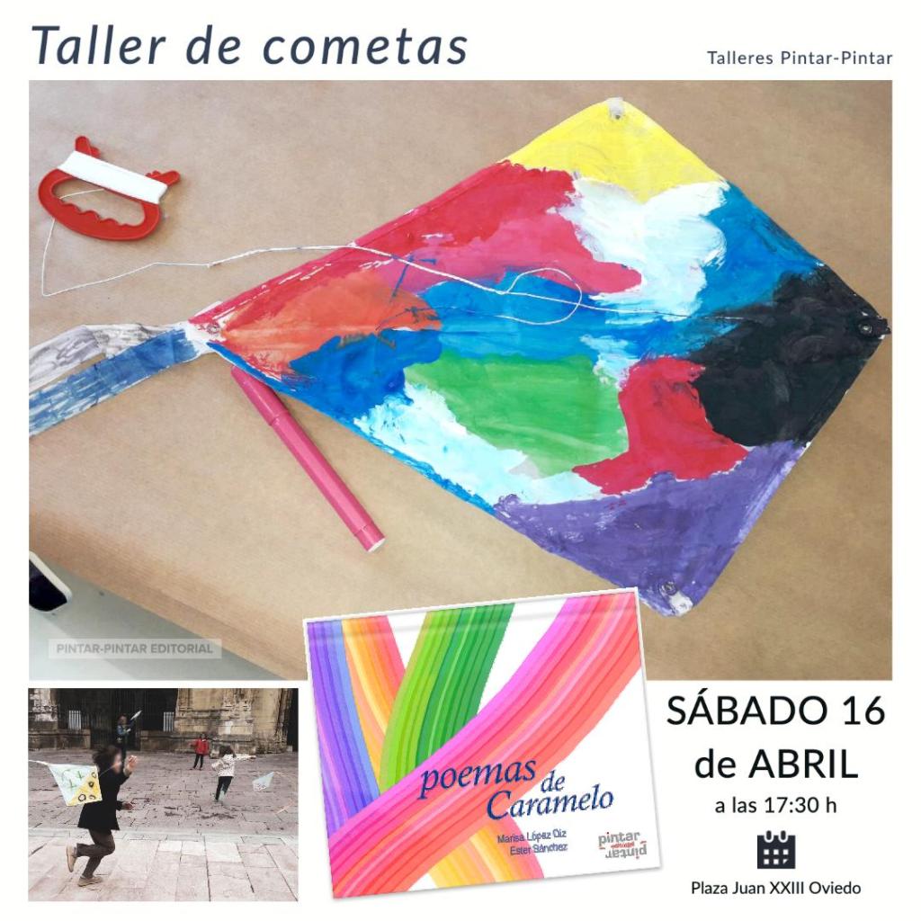 ¿Cuántos colores conoces? ¿Te sabes sus nombres? ¿Sabes guisarlos? Hoy te enseñamos a cocinar colores y pintar con ellos ¡una cometa! Cada participante recibirá una cometa blanca de poliéster con cordel y asa, blanca, y la transformará en una cometa artística. Mientras pintamos nuestra cometa recitaremos el poema “Voy a hacer una cometa” incluido en el libro “Poemas de caramelo” de Marisa López Diz con ilustraciones de Ester Sánchez, y si el tiempo nos acompaña, al finalizar el taller, ¡echaremos a volar nuestras cometas en la Plaza Porlier o en la Plaza de la catedral!