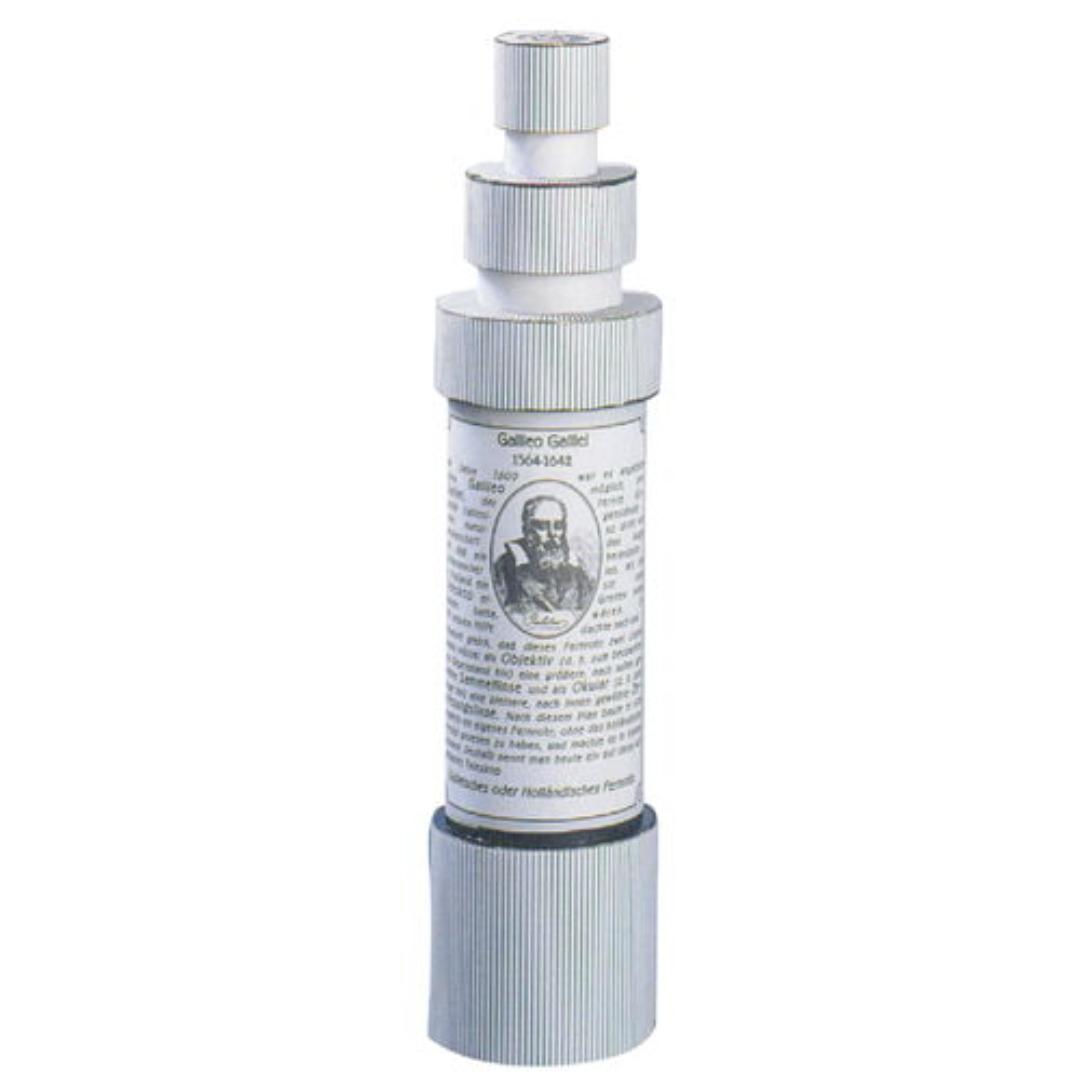 Construiremos un catalejo de cartón con lentes de plástico (longitud focal de +360 mm y -35 mm) similar al inventado por Galileo Galilei. Replegado su longitud es de 19 cm y desplegado tiene una longitud máxima de 37 cm. Con este catalejo obtendremos una imagen de 10 aumentos.
