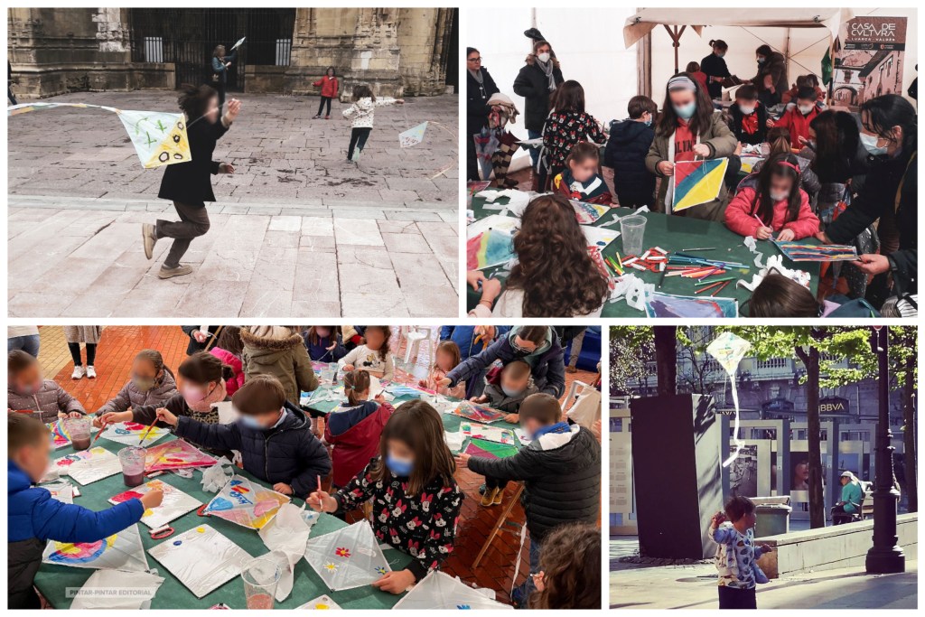 ¿Cuántos colores conoces? ¿Te sabes sus nombres? ¿Sabes guisarlos? Hoy te enseñamos a cocinar colores y pintar con ellos ¡una cometa! Cada participante recibirá una cometa blanca de poliéster con cordel y asa, blanca, y la transformará en una cometa artística. Y si el tiempo nos acompaña, al finalizar el taller, ¡echaremos a volar nuestras cometas en la Plaza Porlier o en la Plaza de la catedral!