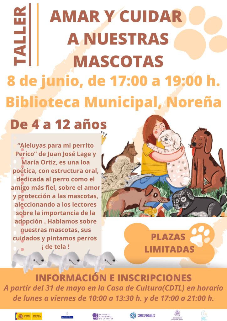 Hablaremos sobre la fidelidad y amor a los perros… ¡o a las mascotas! Tomaremos como referencia los poemas del libro «Aleluyas para mi perrito Perico«, un elogio a la fidelidad y generosidad del perro, una loa poética llena de humor y cariño que subraya la necesidad de proteger y cuidar a las mascotas, seres inteligentes con emociones y sentimientos, escrito por Juan José Lage e ilustrado por María Ortiz. Con posterioridad, cada participante recibirá un perrito-peluche de tela blanco (medidas: 210 x 70 x 110 mm) para pintar ¡con los colores que te apetezcan! (pintura textil) y el libro de poemas, para que, una vez finalizada la actividad, la experiencia lectora continúe en las casas.