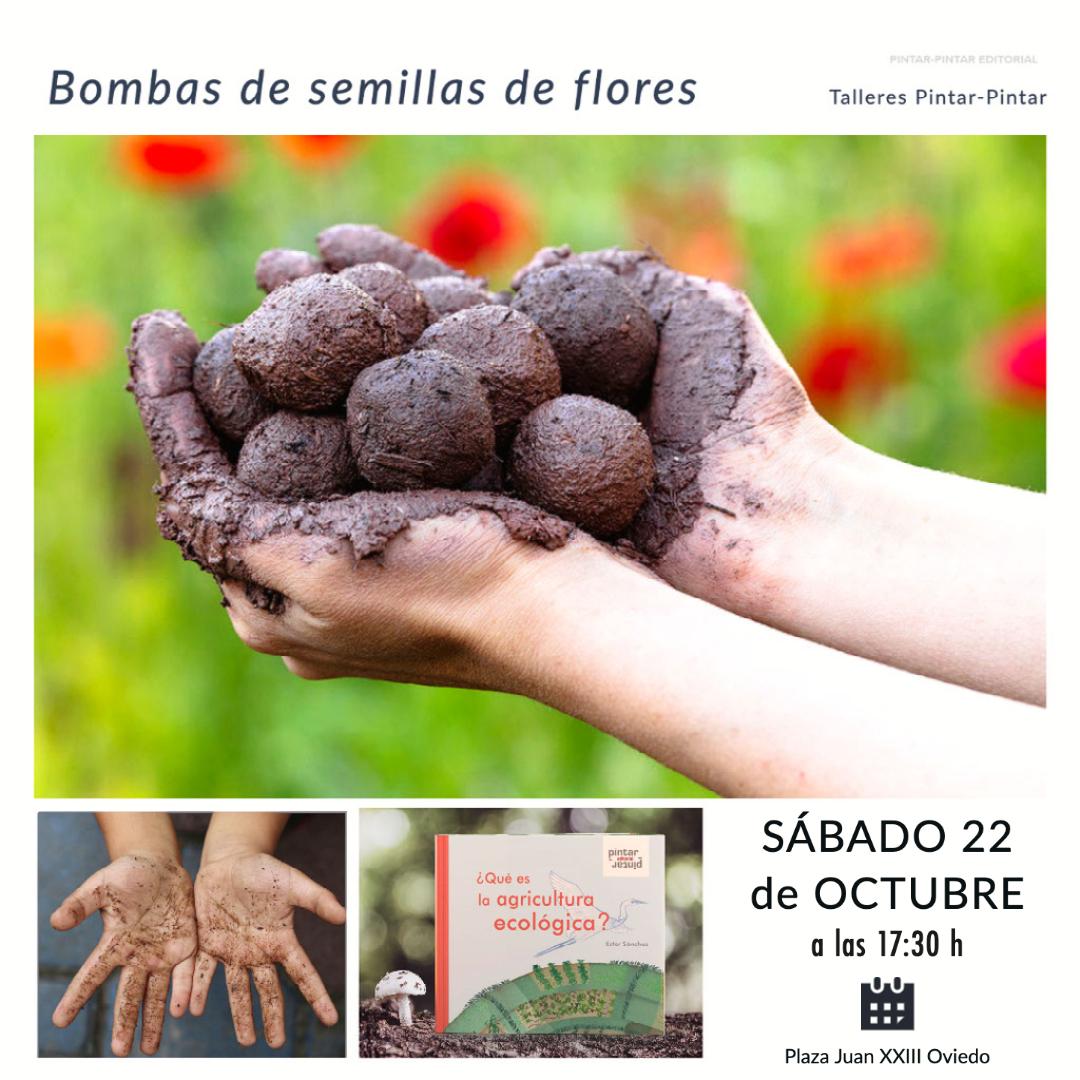 En Pintar-Pintar nos encanta la naturaleza y hoy os proponemos un taller para “bombardear con semillas” nuestro entorno y concienciar sobre el cuidado al medioambiente. Tras una breve puesta en común de conceptos como biodiversidad, ecosistema o equilibrio ecológico (“¿Qué es la agricultura ecológica?” Ester Sánchez), invitaremos a los participantes a “amasar” y crear unas “bombas” de arcilla y tierra, cargadas de semillas de flores silvestres que serán además beneficiosas para los pájaros, las abejas y las mariposas. Unas bombas de semillas que se convertirán en un hermoso campo colorido y que podrás entregar como regalo ecológico a tus amigos, familiares etc. Esperamos así, con este taller, formar a todo un “escuadrón de guerrilleros y guerrilleras” amantes de la naturaleza, dispuestos a “bombardear” responsablemente terrenos baldíos y necesitados de cuidados.