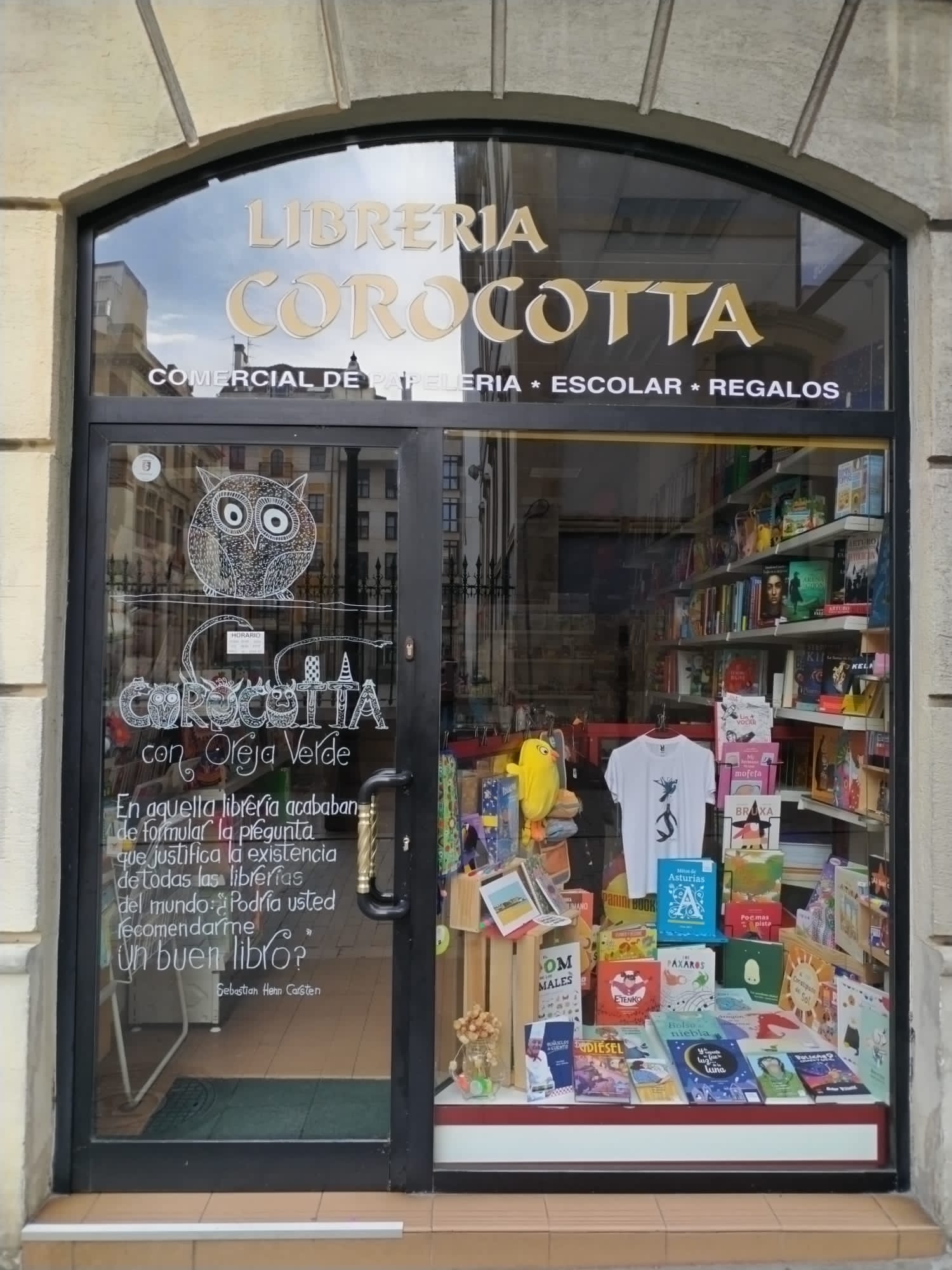 Un espacio asentado en Gijón, desde hace ya más de 25 años, que renace ahora de la mano de Ana López Chicano: Corocotta con Oreja Verde, y sí, es esa misma oreja, la Oreja Verde de Paco Abril, que durante tantos años leímos en el Diario La Nueva España, la que seguro se dejará ver y escuchar en esta renovada librería.