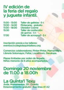 Participamos en la IV Edición de la Feria del Regalo y el Juguete Infantil organizado por el Colegio La Quinta’l Texu.