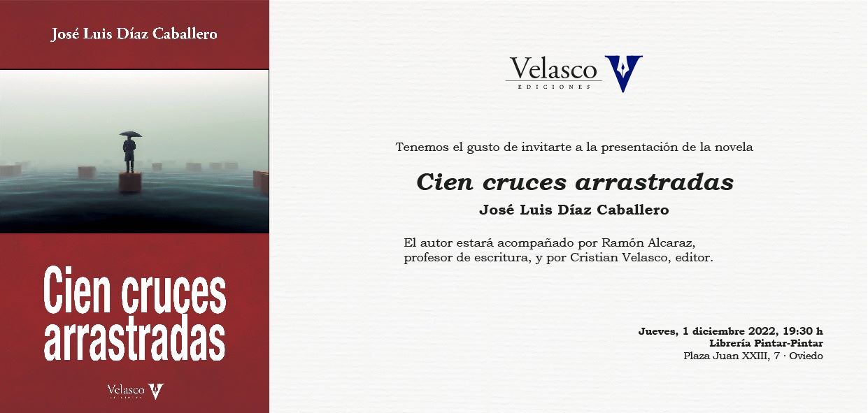 El próximo jueves 1 de diciembre a las 19:30 h, en Pintar-Pintar / Libros, Colores y Lletres Asturianes (Plaza Juan XXIII – Oviedo), José Luis Díaz Caballero presentará Cien cruces arrastradas publicado por Velasco Ediciones.