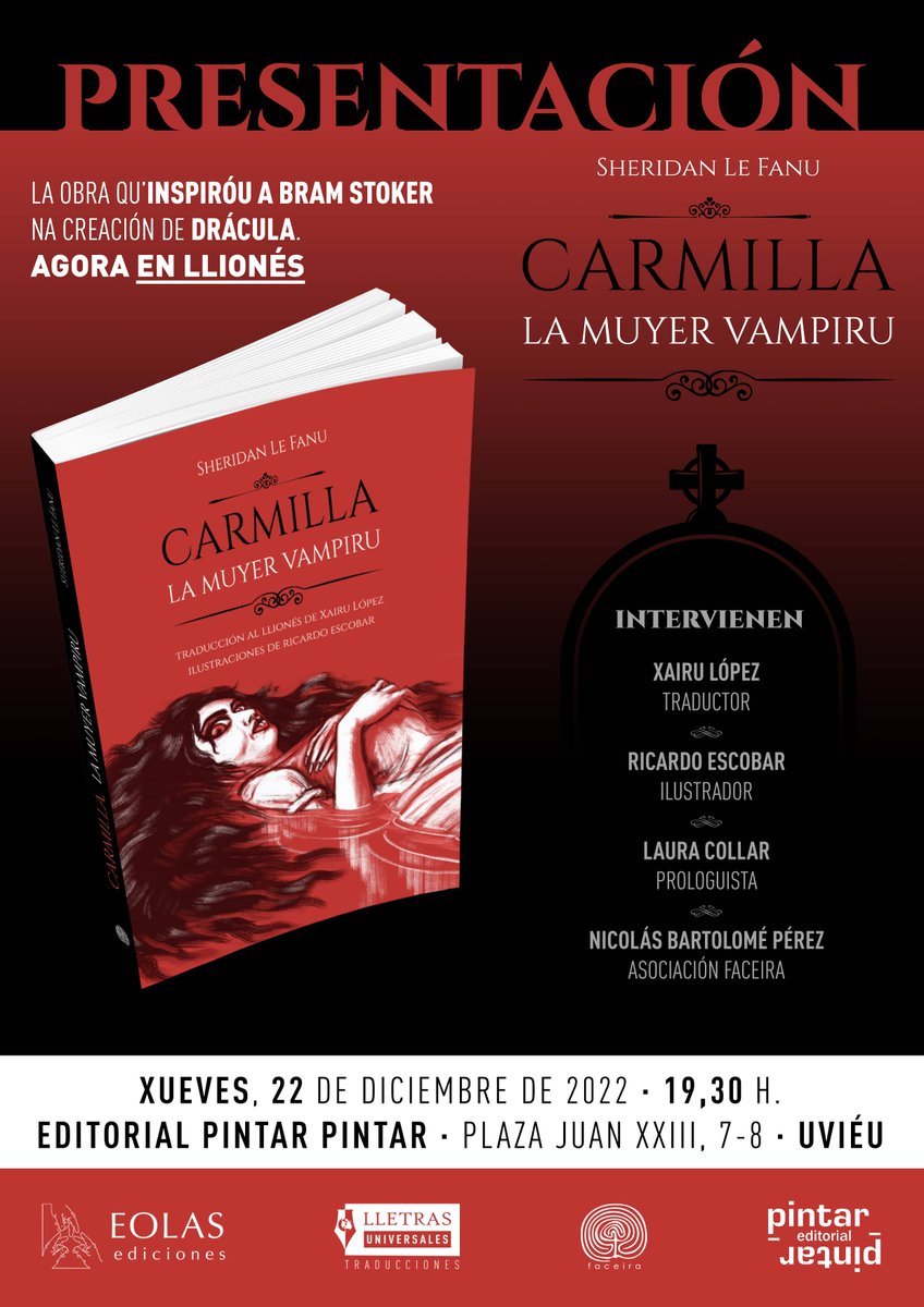 Presentación de «Carmilla, la muyer vampiru» organizada pola Asociación Cultural Faceira, colectivu que trabaya pola defensa del patrimoniu históricu, lingüísticu y cultural de Llión.