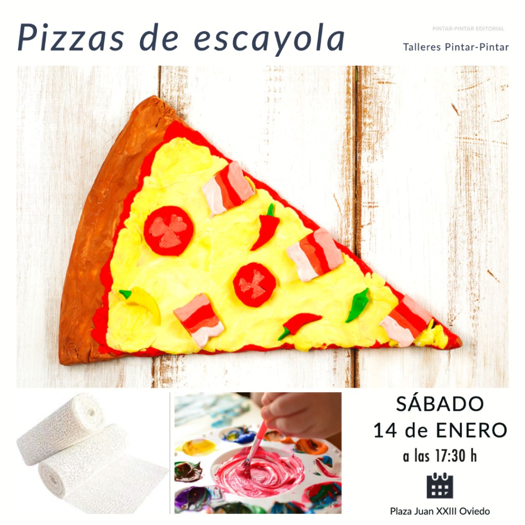 Podrás inventarte una pizza con los ingredientes que tú quieras ¡y luego hay ponerle un nombre! Pizzas terroríficas, pizzas de letras con chocolate, pizzas de sabores divertidos…. imagínate la tuya y… ¡»hornéala»! Emplearemos cartones, papeles, materiales diversos, vendas de escayola, pinturas etc etc