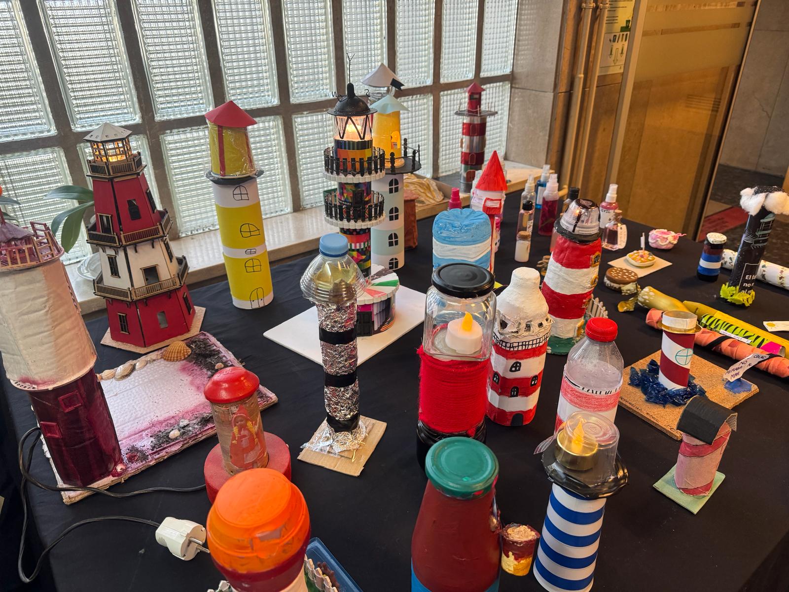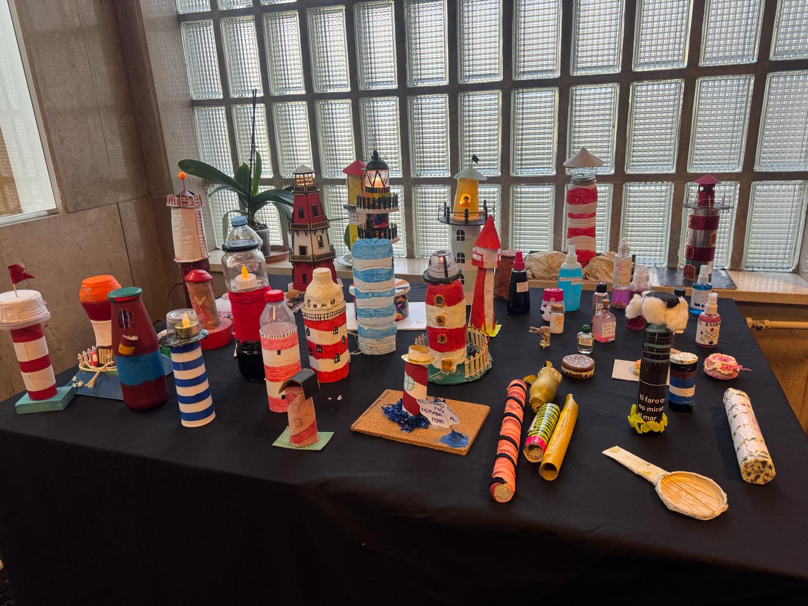 Exposición de trabajos, de los chicos y chicas de 1º de la ESO del IES Carreño de Miranda (Avilés), tras la lectura de «El faro que no miraba al mar» de Natalia Menéndez.