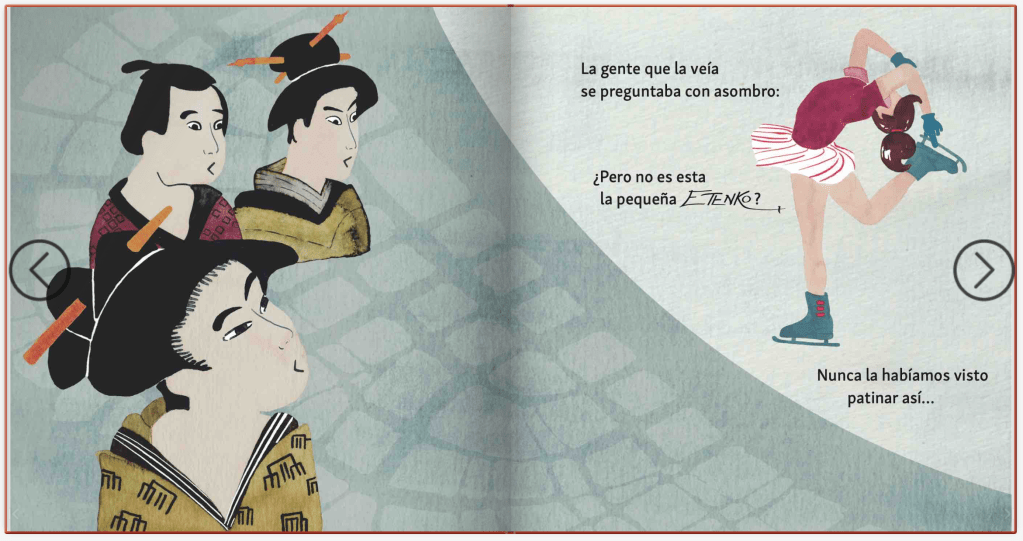 Etenko es una niña que sueña con llegar a lo más alto patinando, realizando piruetas increíbles, casi volando, ligera, fuerte y segura mientras persigue sus sueños de libertad, en una bonita metáfora. Un álbum infantil ilustrado que nos habla sobre la presencia y relevancia de las mujeres en el ámbito profesional en general y en el deporte en particular, mujeres campeonas, que han logrado llegar a lo más alto.