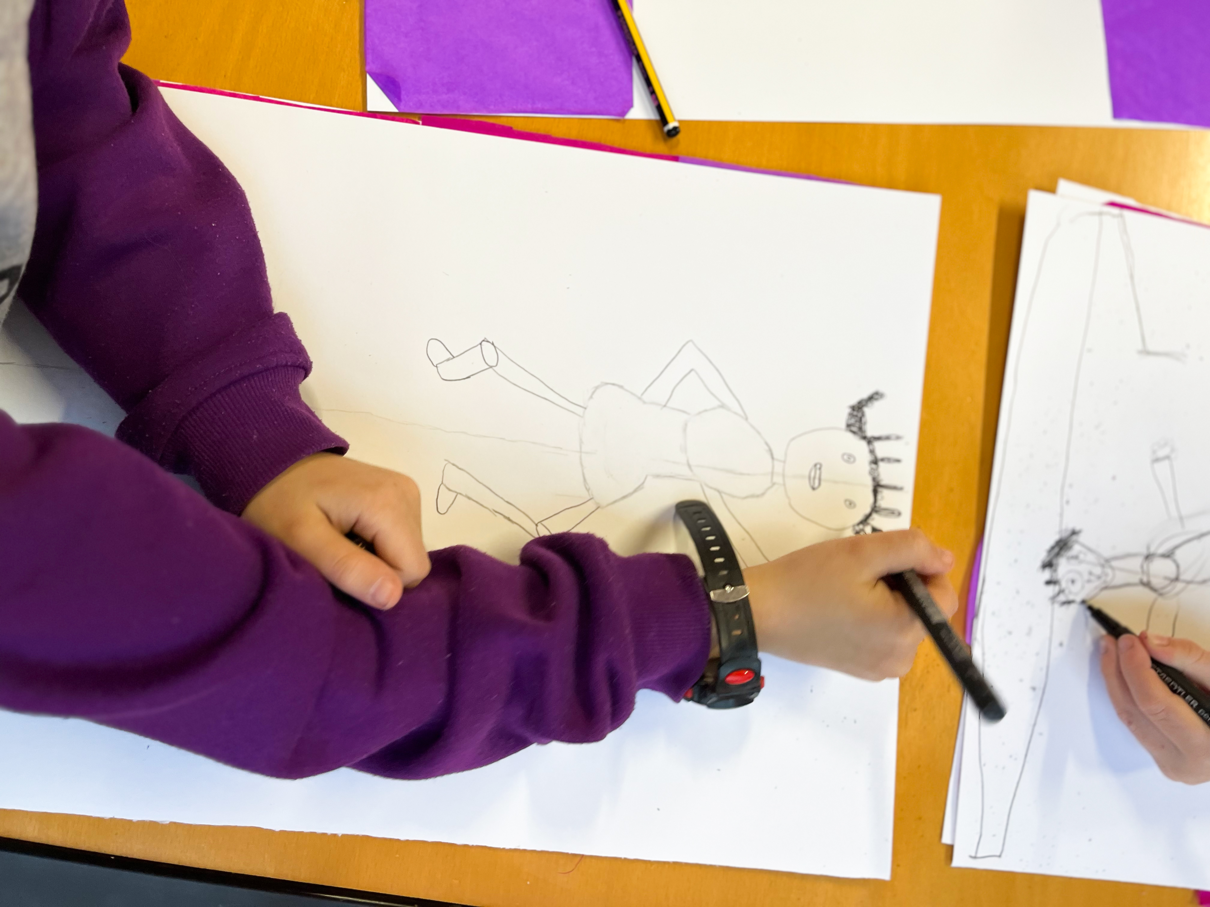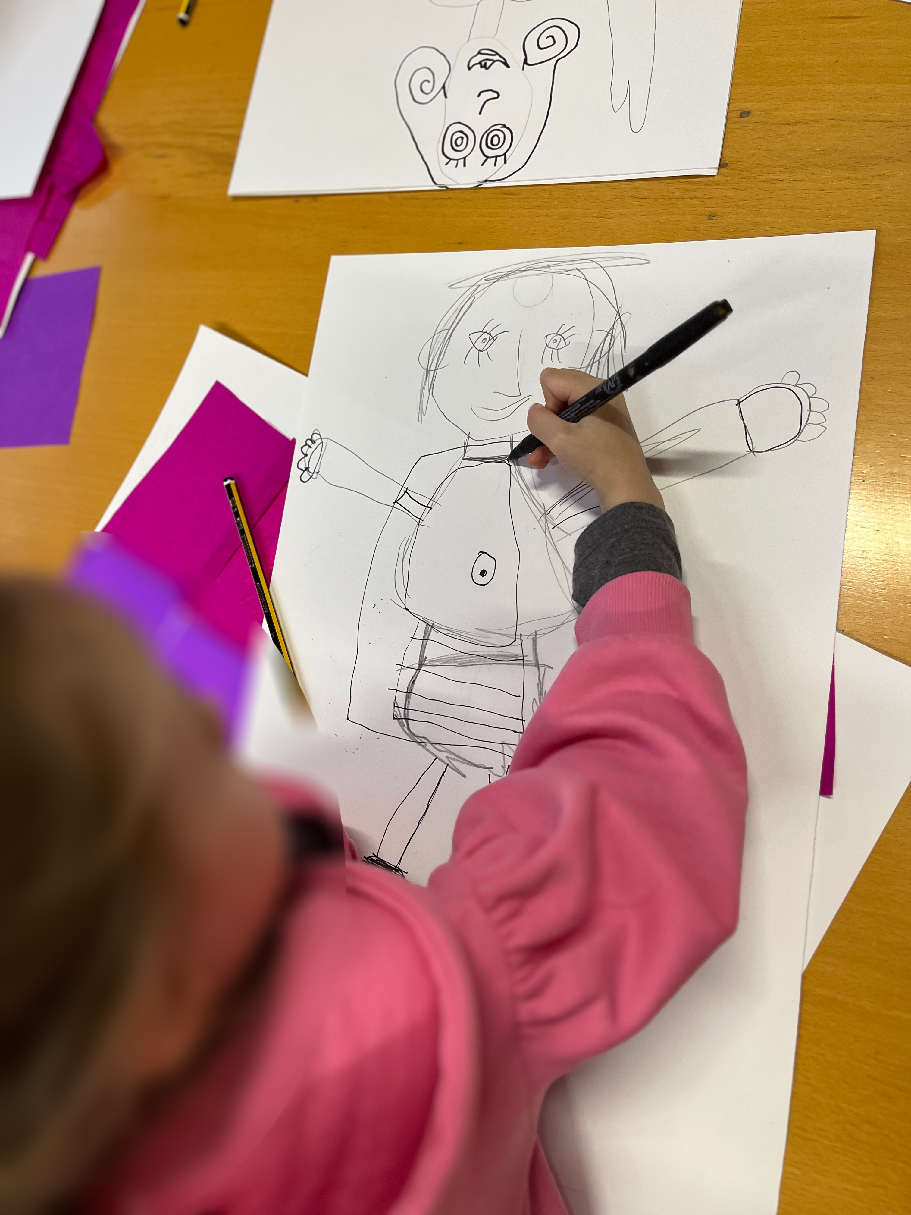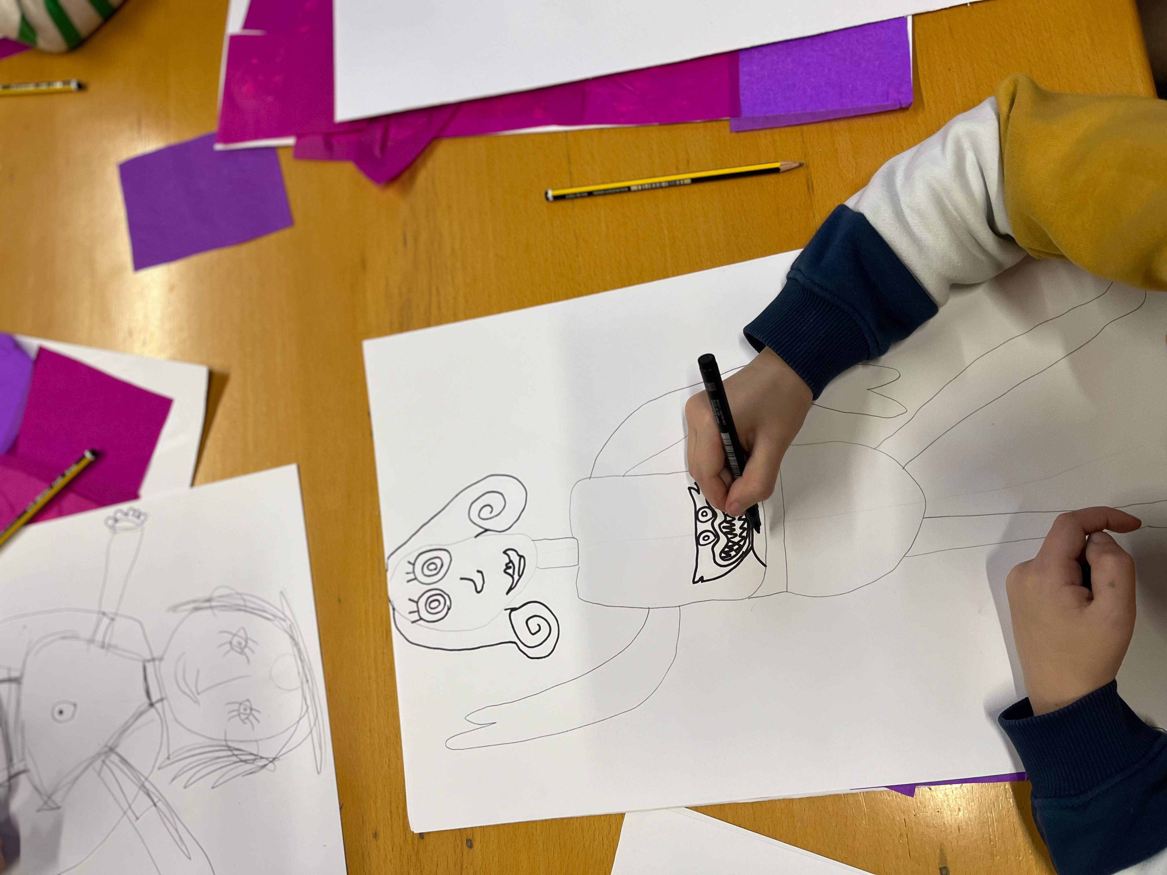 Y tras la lectura y puesta en común, pasamos a crear nuestras propias protagonistas, mujeres y chicas heroínas. Eso sí, previamente aprovechamos para repasar las proporciones del cuerpo humano y enseñar algunos pequeños «trucos» de ilustración a la hora de crear personajes.