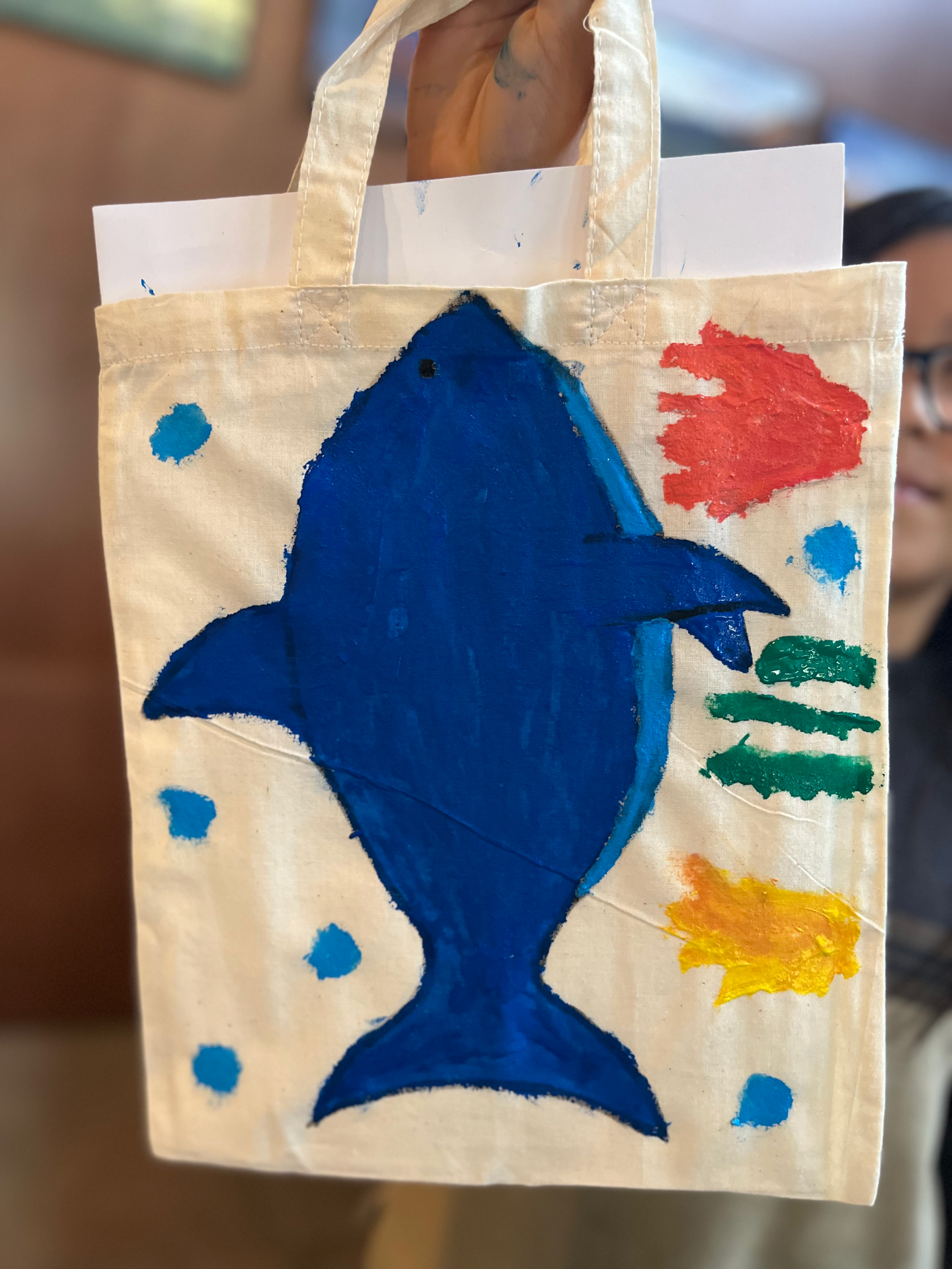 Y tras la lectura, hemos personalizado unas bolsas de algodón con nuestras ilustraciones para meter este libro y ¡un montón de cuentos más!