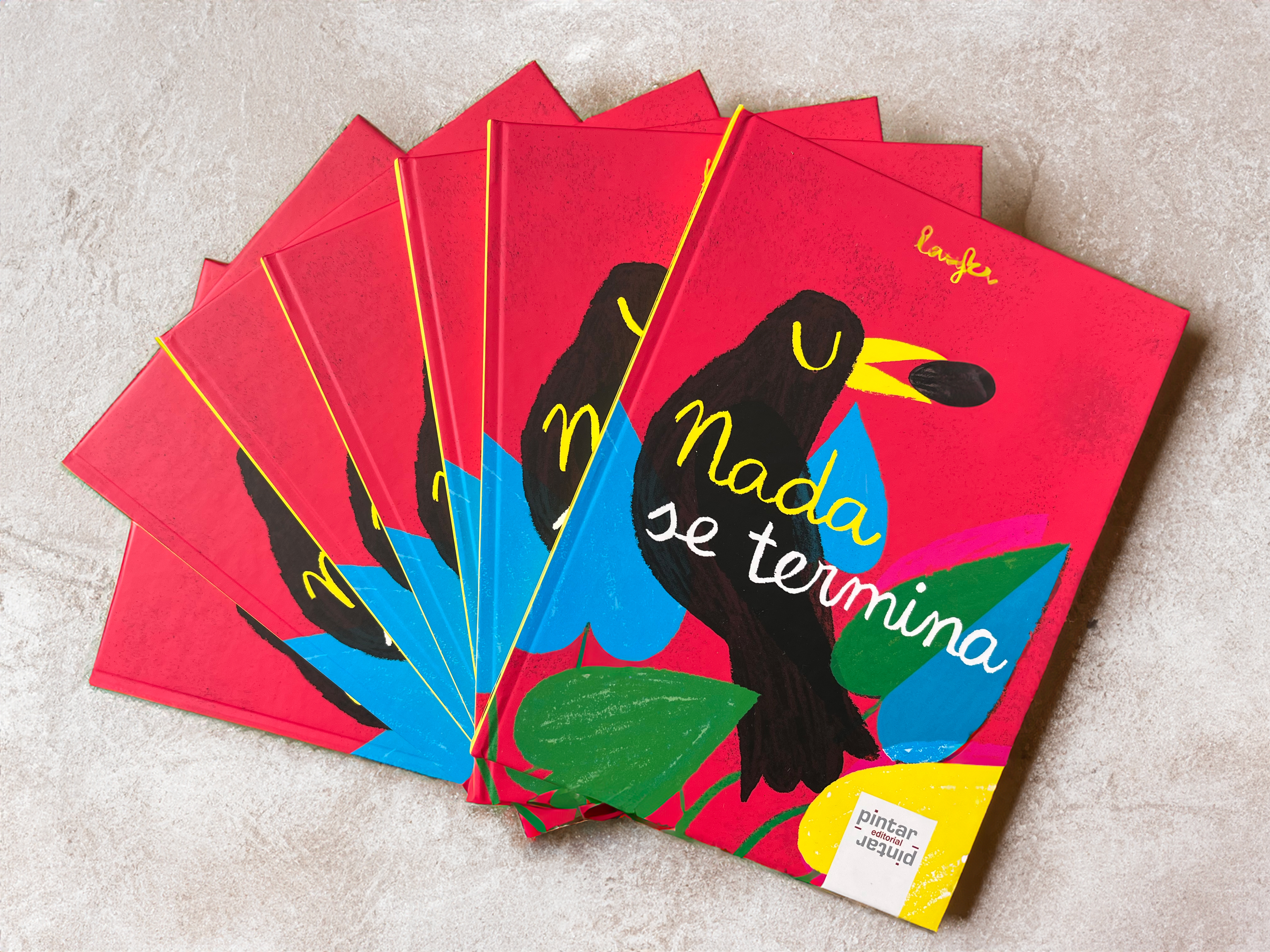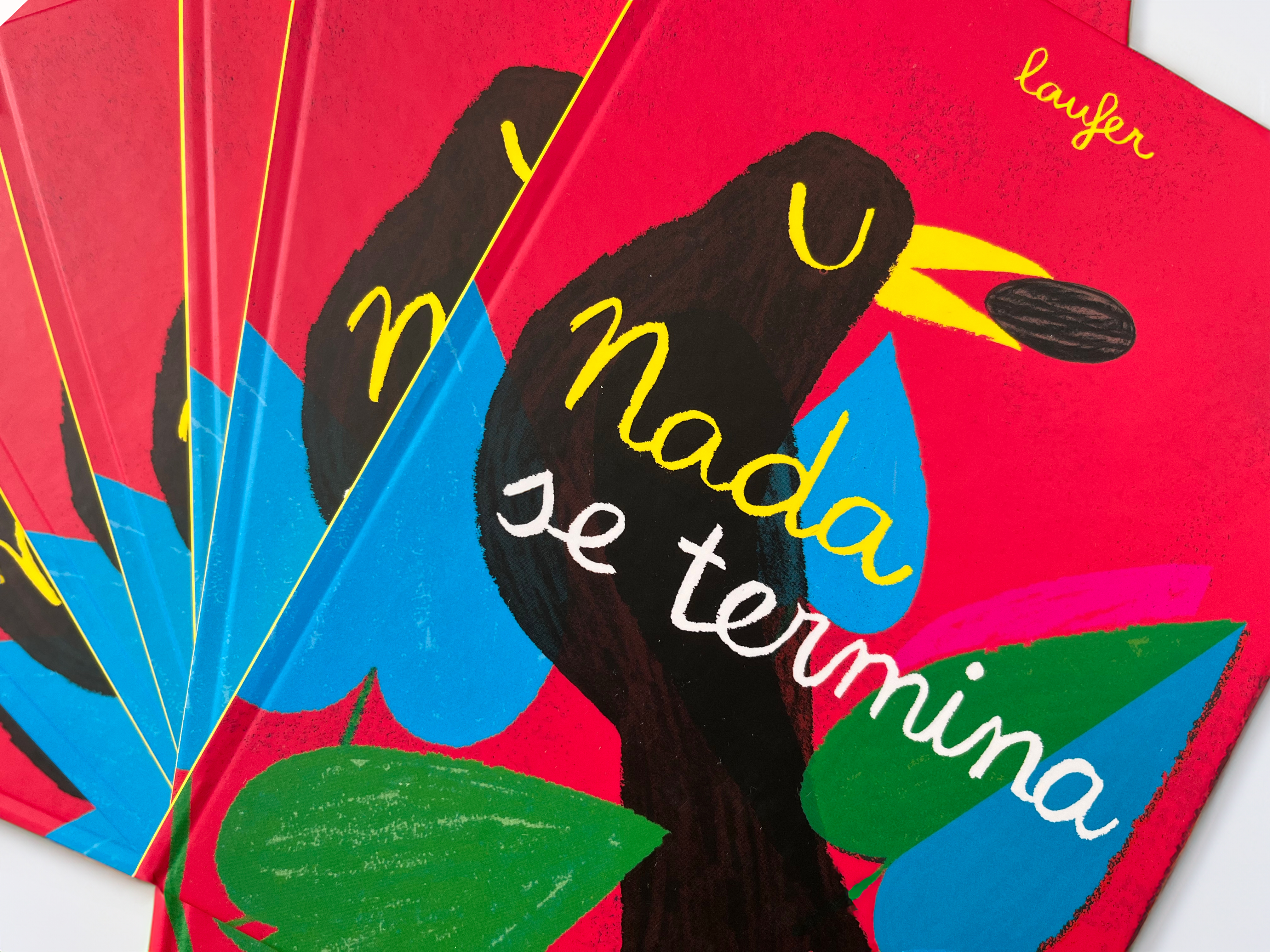 «Nada se termina, solamente cambia», así comienza el primer álbum escrito y a la vez ilustrado por Laura Fernández Arquisola, Laufer, que ya cuenta con una dilatada carrera como ilustradora en todos los formatos (LIJ, libro de texto, animación…) y que en su nuevo trabajo deja claras sus señas de identidad: descifrar lo complejo de forma sencilla, con ternura y por medio de colores potentes.