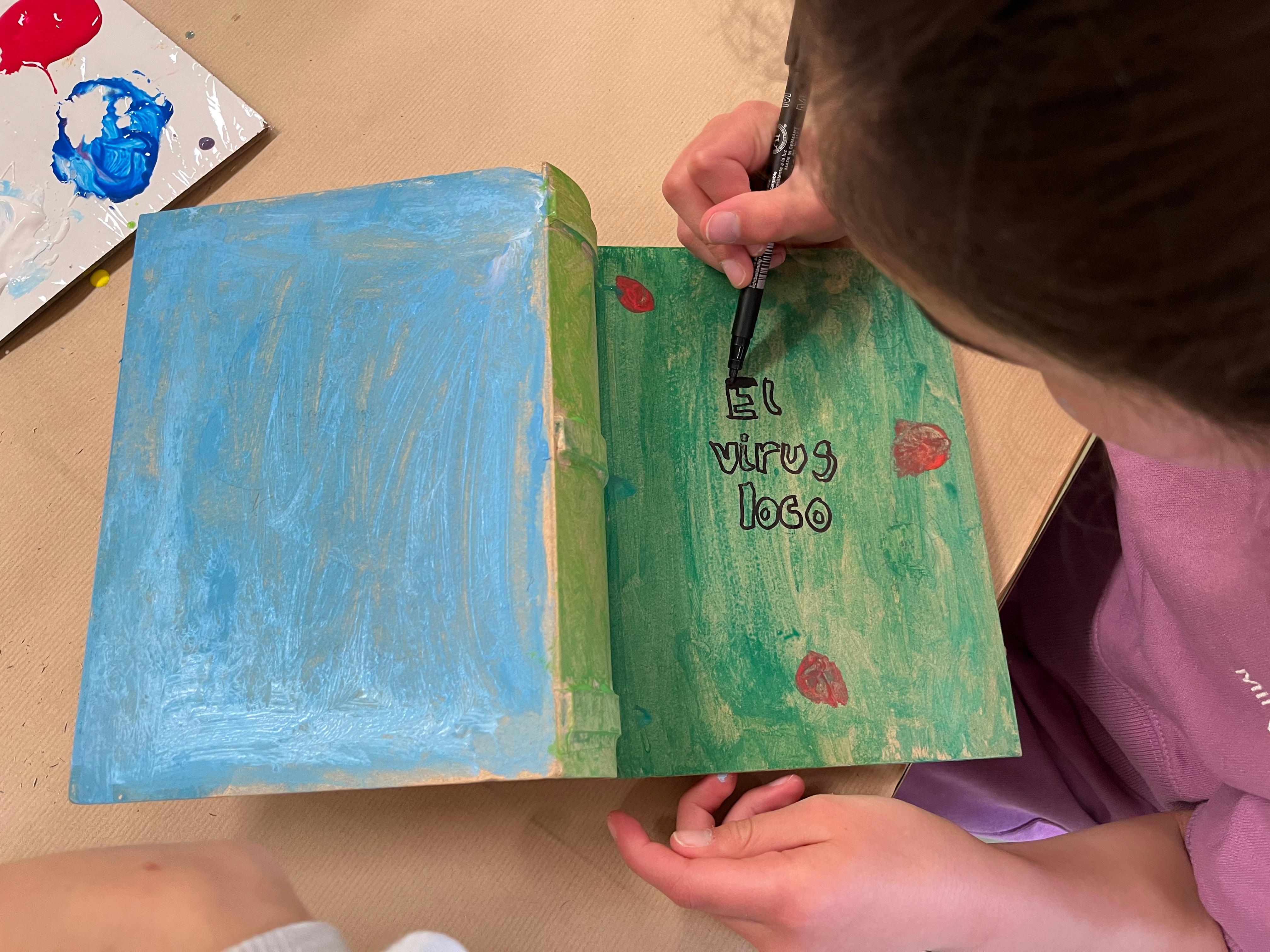 - El alumnado de cuarto curso seleccionó la lectura de Cuentos desde el balcón, de María Quintana Silva con ilustraciones de Laufer. Y tras compartir la lectura, creamos nuestras propias portadas y contraportadas para nuestras cajas libros.
