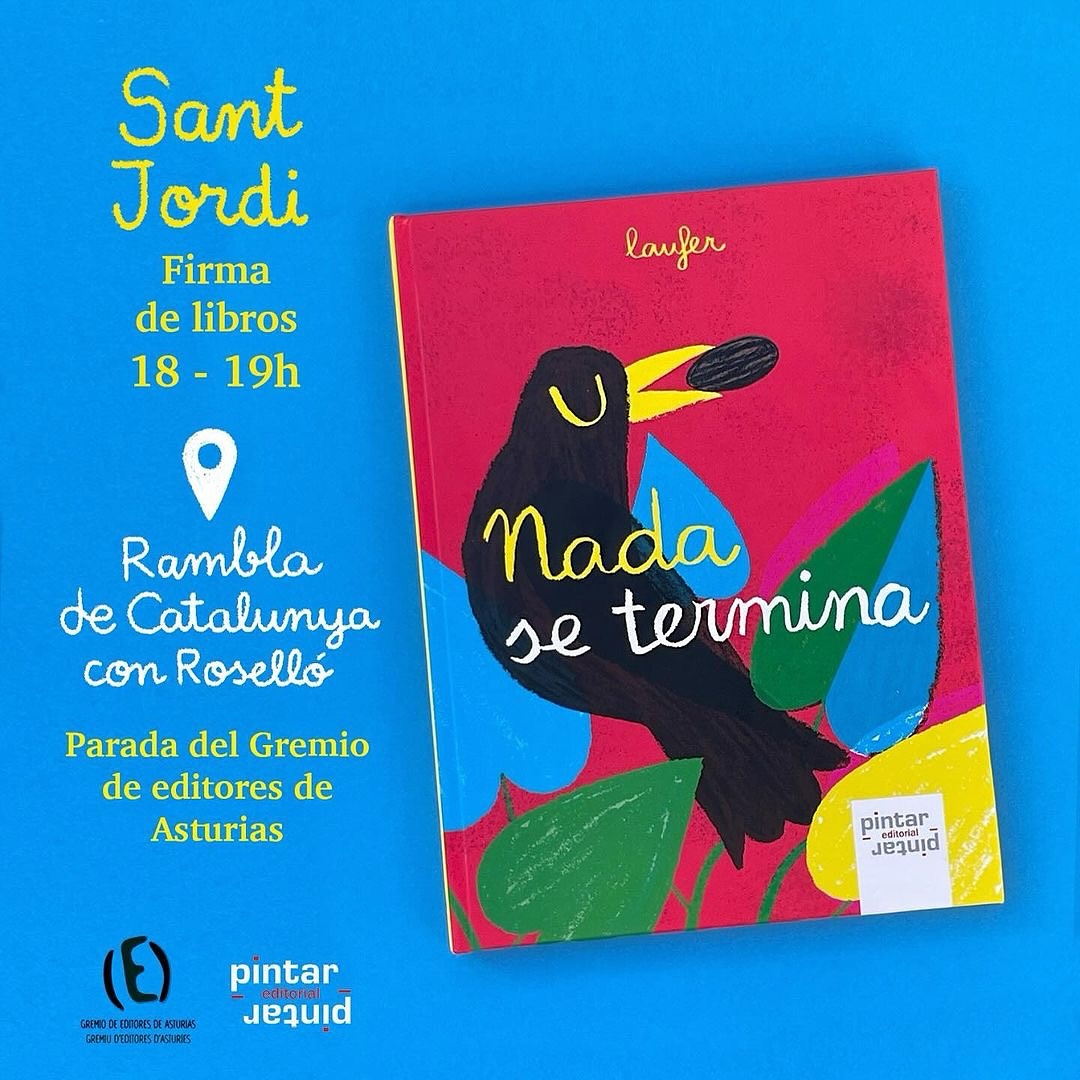 Allí podrás encontrar varias de nuestras publicaciones, entre ellas el álbum infantil ilustrado «Nada se termina» de Laura Fernández Arquisola (Laufer), que nos visitará para firmar y dedicar ejemplares de 18 a 19 h