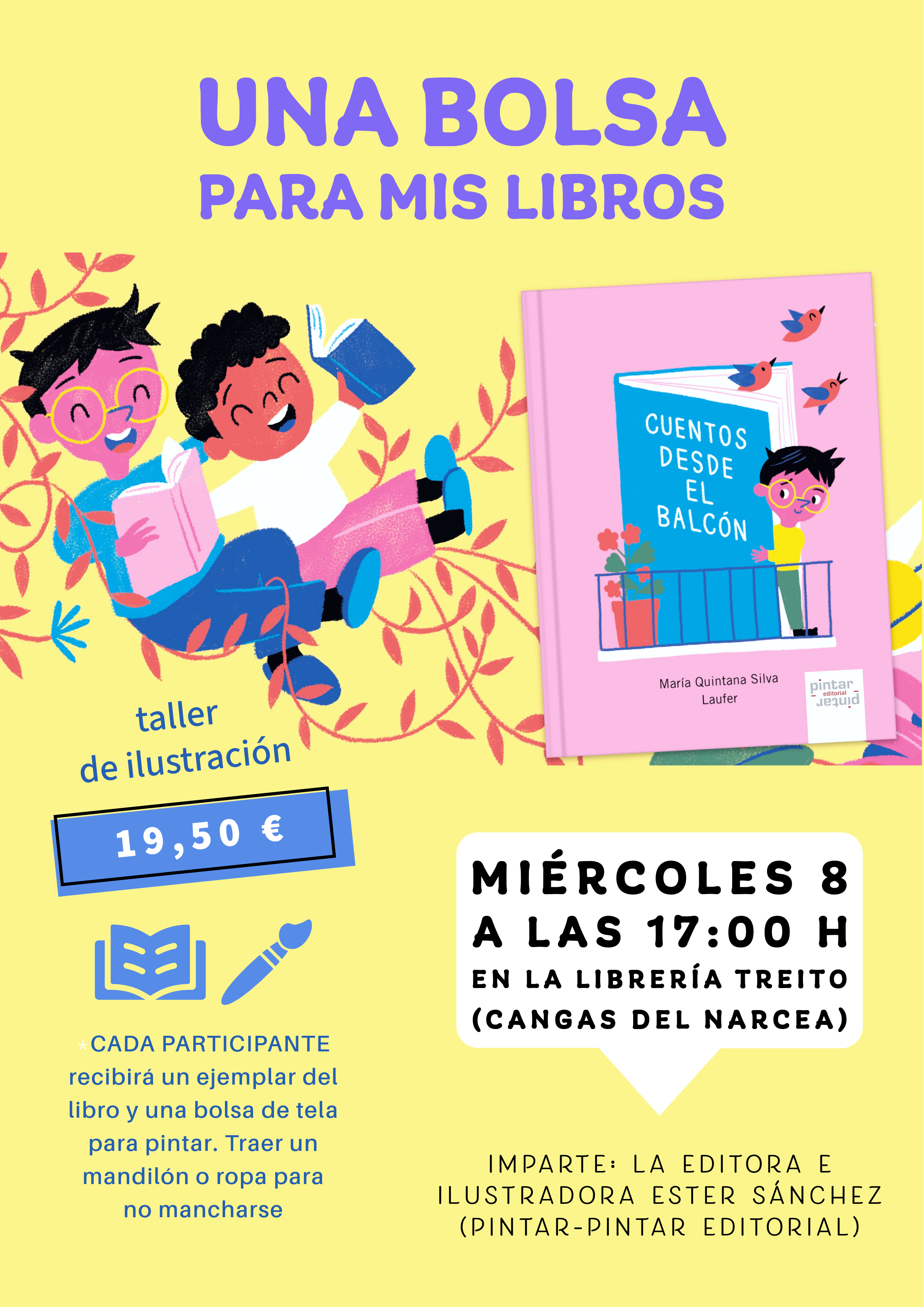 Precio del taller: 19,50 €, incluye un ejemplar del libro Cuentos desde el balcón + una bolsa de tela + materiales