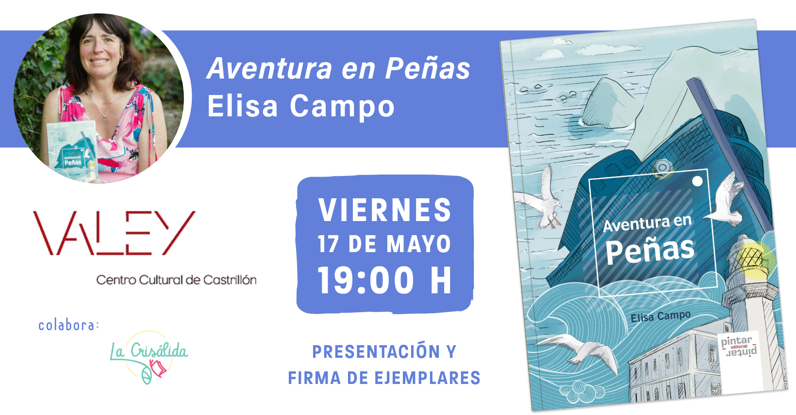Hoy viernes 17 de mayo a las 19:00 h, Elisa Campo presentará su novela juvenil «Aventura en Peñas» en el Valey Centro Cultural de Castrillón.