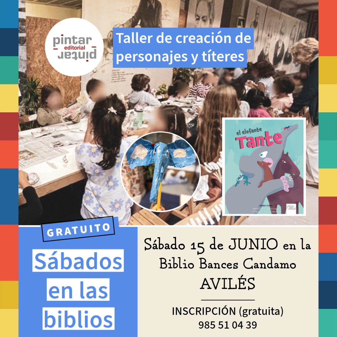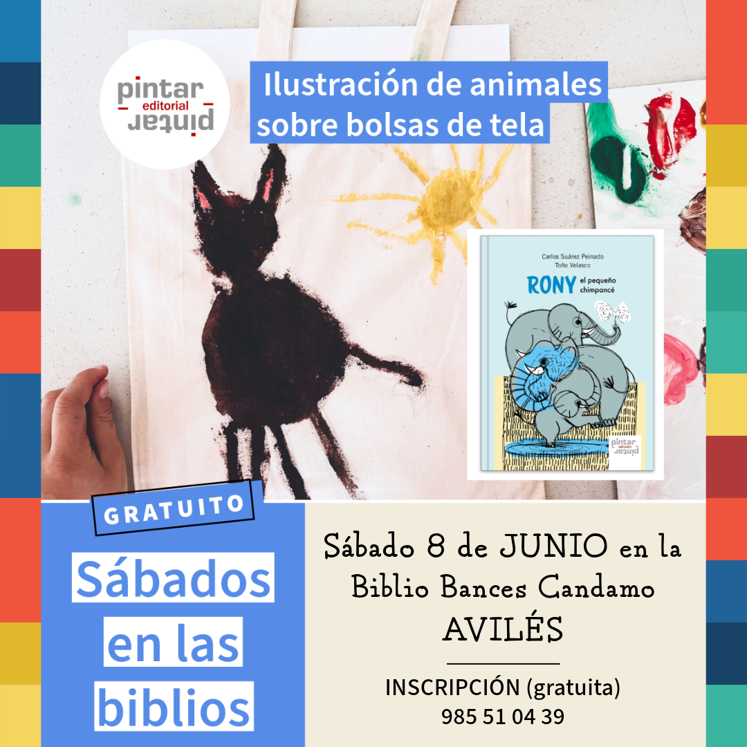 Libros y talleres Pintar-Pintar para el programa «Sábados en las Biblios» organizado por la Red de Bibliotecas de Avilés.