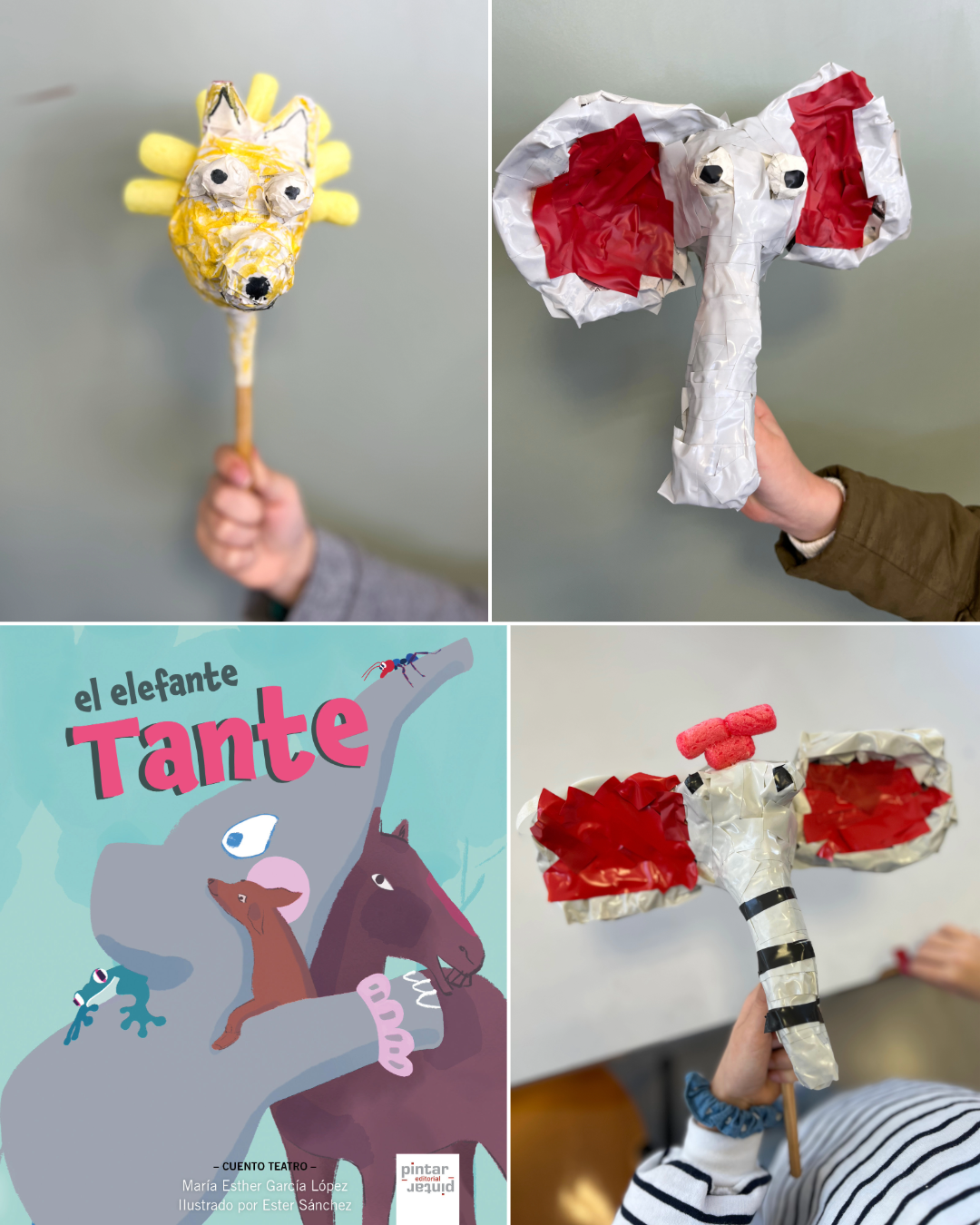 Compartimos la lectura del cuento-teatro «El elefante Tante« escrito por María Esther García López e ilustrado por Ester Sánchez y aprendemos a crear personajes para cuentos y llevarlos a las tres dimensiones para crear ¡unos títeres con los que escenificar historias!