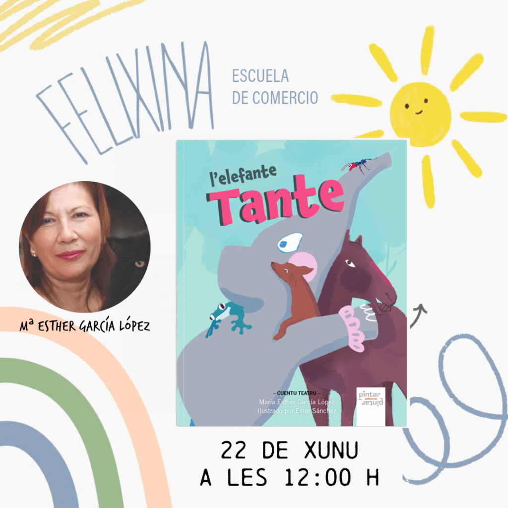 L’elefante Tante con Mª Esther García López el sábadu 22 de xunu a les 12:00 h en la Escuela de Comercio. Más información.