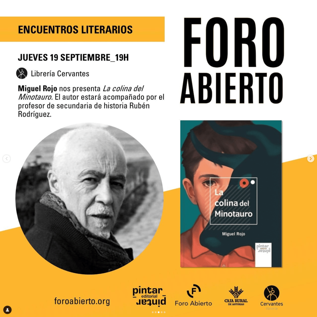El próximo jueves, 19 de septiembre, te esperamos en la Librería Cervantes de Oviedo a las 19:00 horas, en la presentación de la nueva novela juvenil La colina del Minotauro, escrita por el Miguel Rojo. Acompañará y presentará al autor Rubén Rodríguez, profesor de Educación Secundaria.