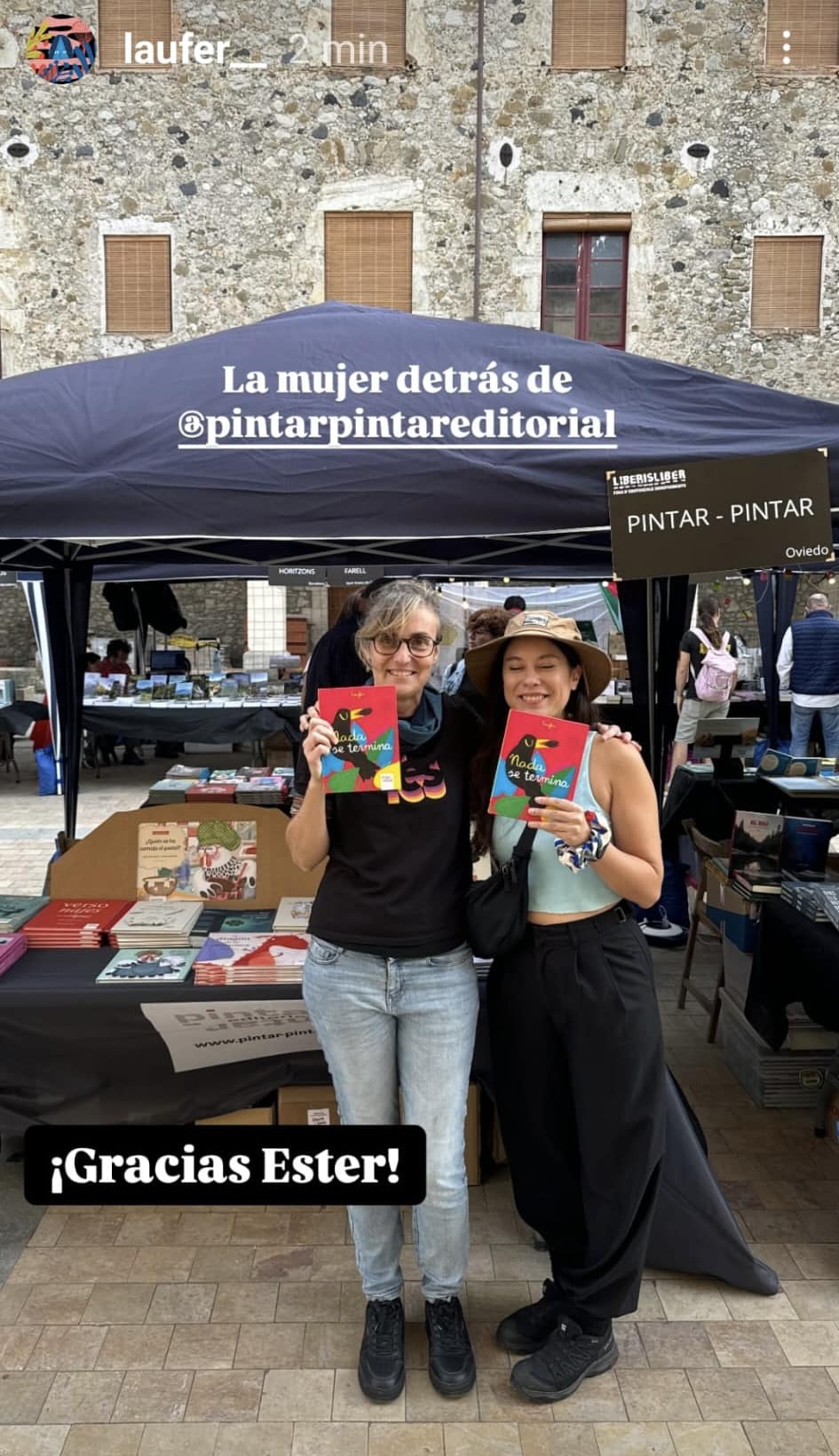 Durante la feria, también tuvimos la suerte de conocer a la ilustradora Laufer, autora de los textos e ilustraciones del álbum Nada se termina, quien nos visitó y compartió un momento muy agradable con nosotros.