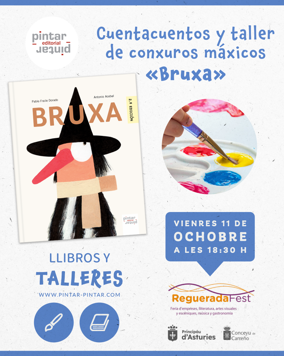Dende Pintar-Pintar vamos participar coles nueses publicaciones n’asturianu nel mercáu na fábrica d’Ortiz y tamién vamos impartir el taller: «Bruxa». Cuentacuentos y taller de conxuros máxicos con Pablo Fraile Dorado.