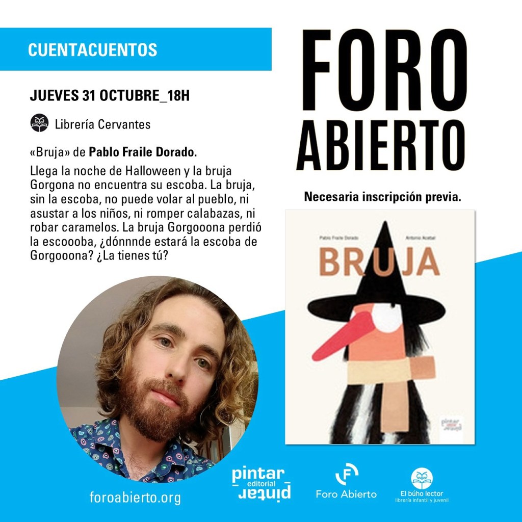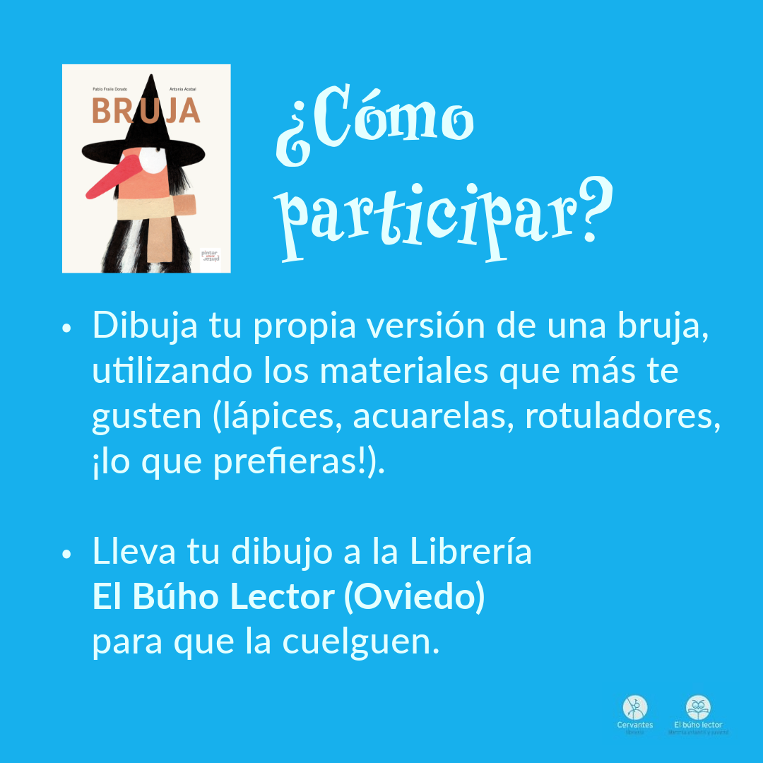 Desde la Librería El Búho Lector (Oviedo) y Pintar-Pintar Editorial, te invitamos a participar en el concurso de dibujo «Crea tu propia bruja», inspirado en el álbum ilustrado «Bruja» de Pablo Fraile Dorado y Antonio Acebal. Cada niña y niño puede diseñar su propia bruja, con su escoba, sombrero y poderes especiales. ¡Deja volar tu imaginación y crea la bruja más original!